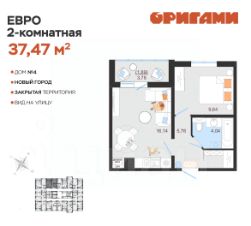 ЖК ОригамиСтарт продаж дома 4Комфортная квартира с грамотной планировкой: разумное расположение комнат и просторная кухня гостиная. Сдается в базовой отделке: готова стяжка пола и установлены счетчики, лоджии остеклены и заведен кабель для подключения интернета. Качественные металлические входные двери с надежной фурнитурой.Дополнительно вы можете выбрать любой вид отделки от застройщика — ''whitе bох'' или ''whitе bох PRO'' с полностью готовым санузлом, а также ''под ключ'' в стиле Утро или Вечер.Современные и стильные подъезды с яркими дизайнерскими холлами и качественной отделкой. В каждом подъезде оборудованы просторные колясочные, велосипедные и лапомойки для домашних питомцев.Отдельно вы можете приобрести кладовое помещение на своем этаже для хранения сезонных вещей. Закрытый двор с видеонаблюдением, парковки за пределами двора, грамотное и продуманное зонирование: березовая роща, луг для активностей и пикников площадка для стритбола, столы для тенниса приватные беседки, сухой пляж с шезлонгами, пешеходные дорожки детские площадки с мягким и безопасным покрытием спортивные площадки, воркаут зоны для спорта Пространство с готовой инфраструктурой продуктовый магазин у дома 12 образовательных и творческих школ медицинский кластер 7 торговых центров 5 детских садов парк ''Прибрежный''Квартира находится на 14 этаже в 1 подъезде
