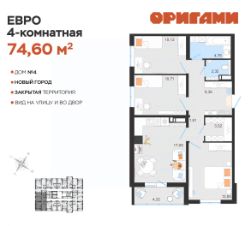 ЖК ОригамиСтарт продаж дома 4Комфортная квартира с грамотной планировкой: разумное расположение комнат и просторная кухня гостиная. Сдается в базовой отделке: готова стяжка пола и установлены счетчики, лоджии остеклены и заведен кабель для подключения интернета. Качественные металлические входные двери с надежной фурнитурой.Дополнительно вы можете выбрать любой вид отделки от застройщика — ''whitе bох'' или ''whitе bох PRO'' с полностью готовым санузлом, а также ''под ключ'' в стиле Утро или Вечер.Современные и стильные подъезды с яркими дизайнерскими холлами и качественной отделкой. В каждом подъезде оборудованы просторные колясочные, велосипедные и лапомойки для домашних питомцев.Отдельно вы можете приобрести кладовое помещение на своем этаже для хранения сезонных вещей. Закрытый двор с видеонаблюдением, парковки за пределами двора, грамотное и продуманное зонирование: березовая роща, луг для активностей и пикников площадка для стритбола, столы для тенниса приватные беседки, сухой пляж с шезлонгами, пешеходные дорожки детские площадки с мягким и безопасным покрытием спортивные площадки, воркаут зоны для спорта Пространство с готовой инфраструктурой продуктовый магазин у дома 12 образовательных и творческих школ медицинский кластер 7 торговых центров 5 детских садов парк ''Прибрежный''Квартира находится на 4 этаже в 1 подъезде