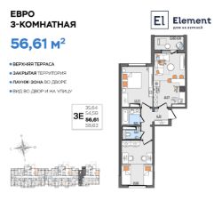 ЖК ЭЛЕМЕНТ Уютная квартира с функциональной планировкой и просторной лоджией Квартира сдается в базовой отделке: готова стяжка пола и установлены счетчики, лоджии остеклены и заведен кабель для подключения интернета. Качественные металлические входные двери с надежной фурнитурой.Дополнительно вы можете выбрать любой вид отделки от застройщика — ''whitе bох'' или ''whitе bох PRO'' с полностью готовым санузлом, а также ''под ключ'' в стиле Утро или Вечер.Все подъезды оборудованы колясочными и бесшумными лифтами. Безбарьерная среда и лифт с нулевой отметки — идеально для перевозки велосипедов и колясок. - дизайнерские холлы с прозрачными входными группами - семейный подъезд с тремя просторными квартирами на площадке - освещение от датчиков движения.Двор с изюминкойВертикальная детская площадка с полимерным покрытием, многоуровневое озеленение, мягкое освещение, беседка с чайной зоной для отдыха.Закрытая территория!Все рядом 44-я и 59-я гимназии, 42 и 22 школы 3 детских сада и детская поликлиника школа искусств и 2 спорткомплекса парк культуры имени 40-летия ВЛКСМ супермаркеты ''Магнит'' и ''Пятерочка''.Данная квартира располагается на 6-м этаже в 3-м подъезде.