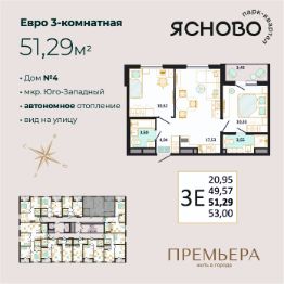 ЖК Ясново Дом 4Старт продаж! Комфортная квартира во второй очереди парк-квартала Ясново. Квартира сдается в базовой отделке: готова стяжка пола и установлены счетчики, лоджии остеклены и заведен кабель для подключения интернета. Качественные металлические входные двери с надежной фурнитурой. Дополнительно вы можете выбрать любой вид отделки от застройщика — ''whitе bох'' или ''whitе bох PRO'' с полностью готовым санузлом, а также ''под ключ'' в стиле Утро или Вечер. О жилом комплексе: — Зелёные аллеи и закрытые дворы без машин — Спортивные и детские площадки — Велодорожки, зоны для отдыха и прогулок — Современные входные группы и дизайнерские МОПы Отличная локация: — 5 минут до гипермаркета ''Лента'' — Рядом строится новый физкультурно-оздоровительный комплекс — До центра города — 1520 минут — Удобный выезд в любую часть городаКвартира на 12 этаже