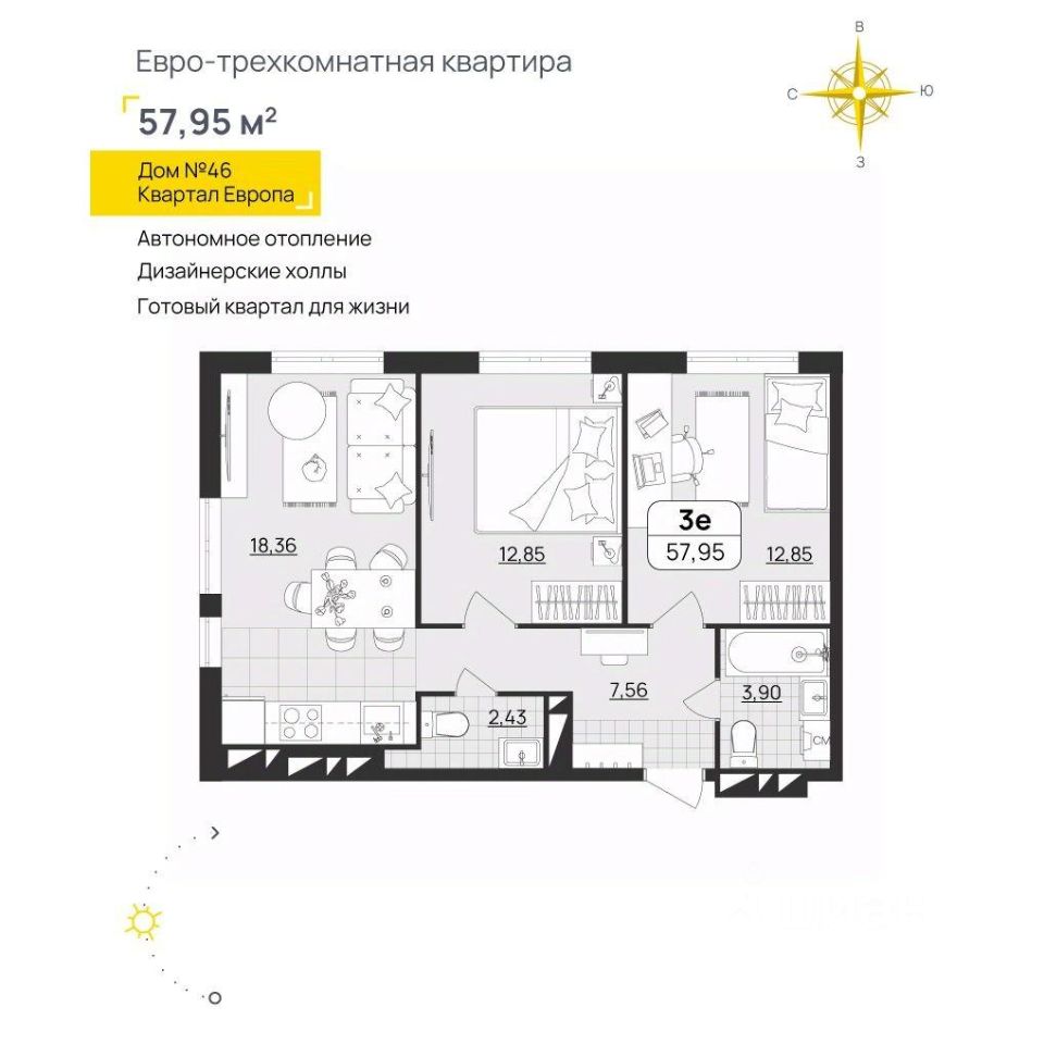 ПРОДАЕТСЯ КВАРТИРА В СДАННОМ ДОМЕ ОТ ЗАСТРОЙЩИКА Квартал ''Европа'' расположен в самом сердце Юго-Западного микрорайона, в шаговой доступности от супермаркетов, поликлиник, детских садов и Губернаторского лицея. Монолитный дом ''Сербия'' восьмая очередь знаменитого квартала. Здесь представлено свыше 40 планировочных решений площадью от 23 до 89 м2, включая уникальные: на последних этажах расположены квартиры со вторым светом в гостиных и квартиры с антресольными этажами с общей высотой потолков 4,8 м. Преимущества: •Безбарьерный вход в подъезды •Дизайнерские холлы •Двойные стеклопакеты на окнах и лоджиях •Автономная крышная котельная •Круглосуточное видеонаблюдение •Коммерческие помещения Действует льготная ипотека и все виды сертификатов в качестве первого взноса.
