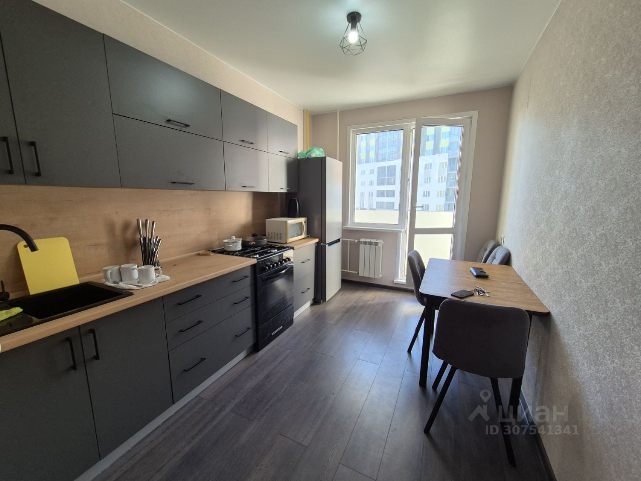 кухонный гарнитур. стиральная машина, микроволновка, два дивана, телевизор, лоджия заст и обшита