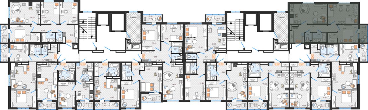 Квартира с функциональной и продуманной планировкой: большая кухня и только полезные метры. Сдается в базовой отделке: выполнена стяжка пола, лоджии остеклены, установлены счетчики, заведен кабель для подключения интернета. Установлены качественные металлические входные двери с надежной фурнитурой. Дополнительно вы можете выбрать любой вид отделки от застройщика — ''whitе bох'' или ''whitе bох PRO'' с полностью готовым санузлом, а также ''под ключ'' в стиле Утро или Вечер. В каждом подъезде — колясочные для хранения малогабаритного транспорта, видео-домофонная связь, вход в подъезд по смарт картам. Холлы с прозрачными входными группами и современным интерьером. Есть возможность приобрести кладовую на своем этаже площадью 10,44 м2.