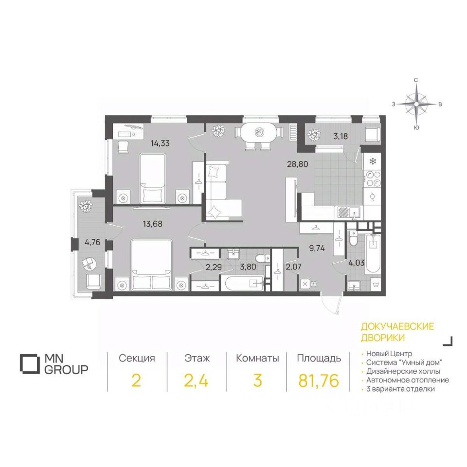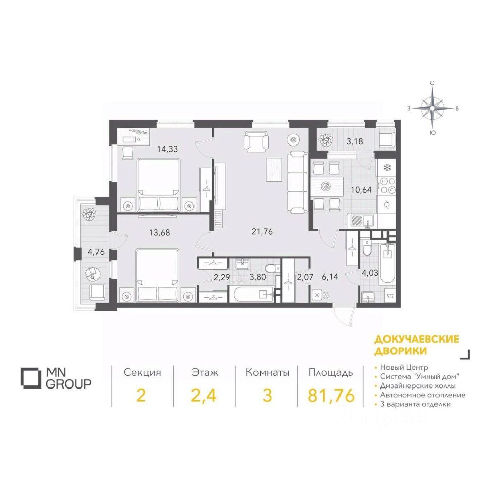 Общая площадь81,76 м2
