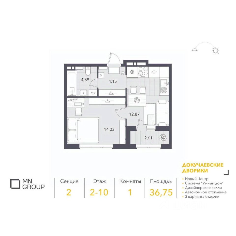 Купить данную квартиру в квартале ''Докучаевские дворики'' можно напрямую от застройщика ''MN Group'': - сопровождение по оформлению квартиры с персональным менеджером - семейная ипотека - военная ипотека - возможность покупки квартиры с предчистовой и чистовой отделкой - обмен старой квартиры в счет покупки новой Запишитесь на консультацию по телефону или на сайте.