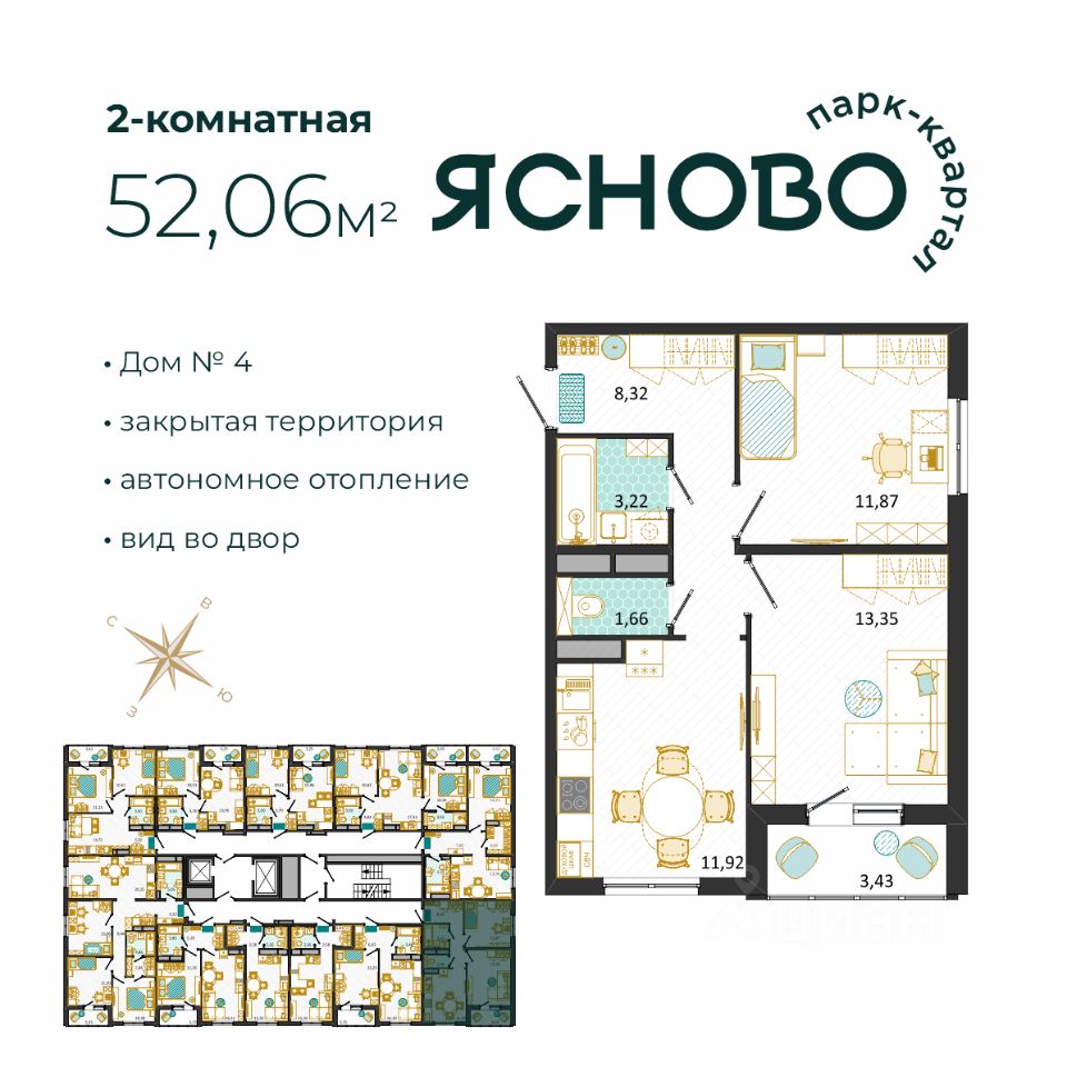 Общая площадь52,06 м2