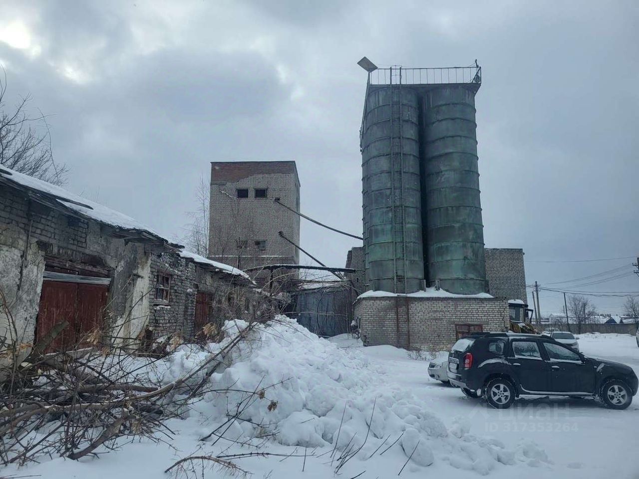 На участке расположены здание АБК 1 038 кв.м. 4 этажа. Склад 2 500 кв.м. оборудован кран мостовой на 20 тонн. Кран козловой 30 тонн. Бетонная площадка 5,5 тыс.кв.м. под козловым краном с ж/д путями. Ж/Д тупик с площадкой 410 метров. Возможно восстановить заезд ж/д вагонов на территорию склада и множество более мелких помещений, гаражей и бетонированных площадок для хранения. Есть силосные бункера.