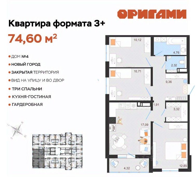 ЖК Оригами Старт продаж дома 4 Комфортная квартира с грамотной планировкой: разумное расположение комнат и просторная кухня гостиная. Сдается в базовой отделке: готова стяжка пола и установлены счетчики, лоджии остеклены и заведен кабель для подключения интернета. Качественные металлические входные двери с надежной фурнитурой. Дополнительно вы можете выбрать любой вид отделки от застройщика — ''whitе bох'' или ''whitе bох PRO'' с полностью готовым санузлом, а также ''под ключ'' в стиле Утро или Вечер. Современные и стильные подъезды с яркими дизайнерскими холлами и качественной отделкой. В каждом подъезде оборудованы просторные колясочные, велосипедные и лапомойки для домашних питомцев. Отдельно вы можете приобрести кладовое помещение на своем этаже для хранения сезонных вещей. Закрытый двор с видеонаблюдением, парковки за пределами двора, грамотное и продуманное зонирование: березовая роща, луг для активностей и пикников площадка для стритбола, столы для тенниса приватные беседки, сухой пляж с шезлонгами, пешеходные дорожки детские площадки с мягким и безопасным покрытием спортивные площадки, воркаут зоны для спорта