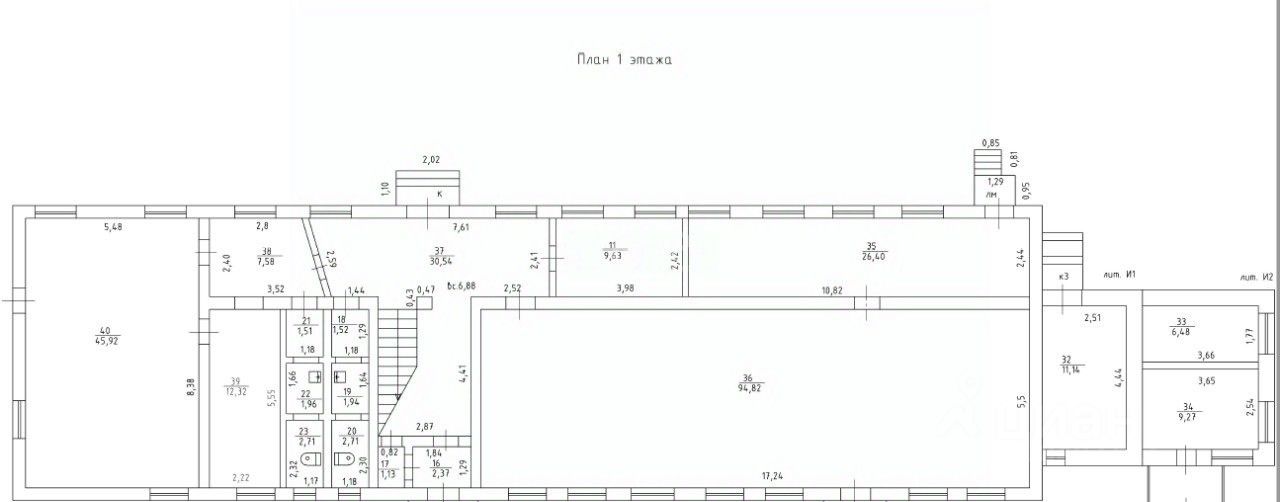 Назначение: Без профиля, любое коммерческое использование Примечание: 2-х этажное производственное отапливаемое здание в аренду. Коммунальные платежи по счетчикам: холодная вода, канализация, электричество 220/380В, отопление центральное. Первый этаж: 230 м2. (теплое производственное) Два больших помещения 150м2 и 70м2 с отдельными входами, запасными выходами и санузлы. Капитальный ремонт 2014г. Полы керамогранит на бетоне толщина 100-120, коридор брекчия на мраморе, лестница отделана мрамором. Двери помещений металлические Бульдорс. Электрика новая, медь под станки. Два санузла на первом этаже. Второй этаж: помещения и коридор 230м2. Помещение из трех комнат для специалистов 21 - 87м2 (свежий ремонт, свой санузел), кабинет глав.буха 22 - 36м2 (свежий ремонт), склад 23 21м2, склад 24 - 40м2. В долгосрочную аренду целым зданием. НДС.