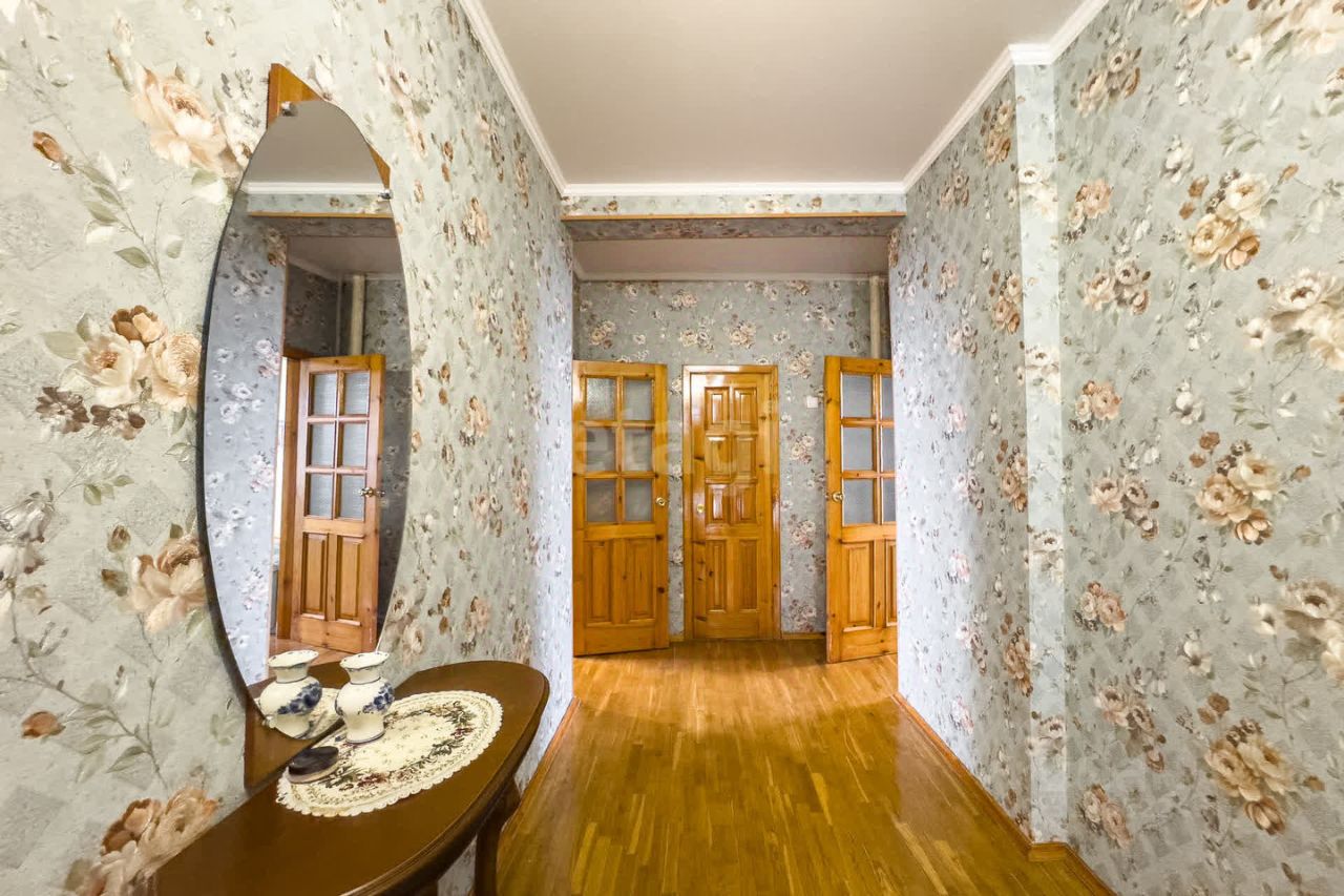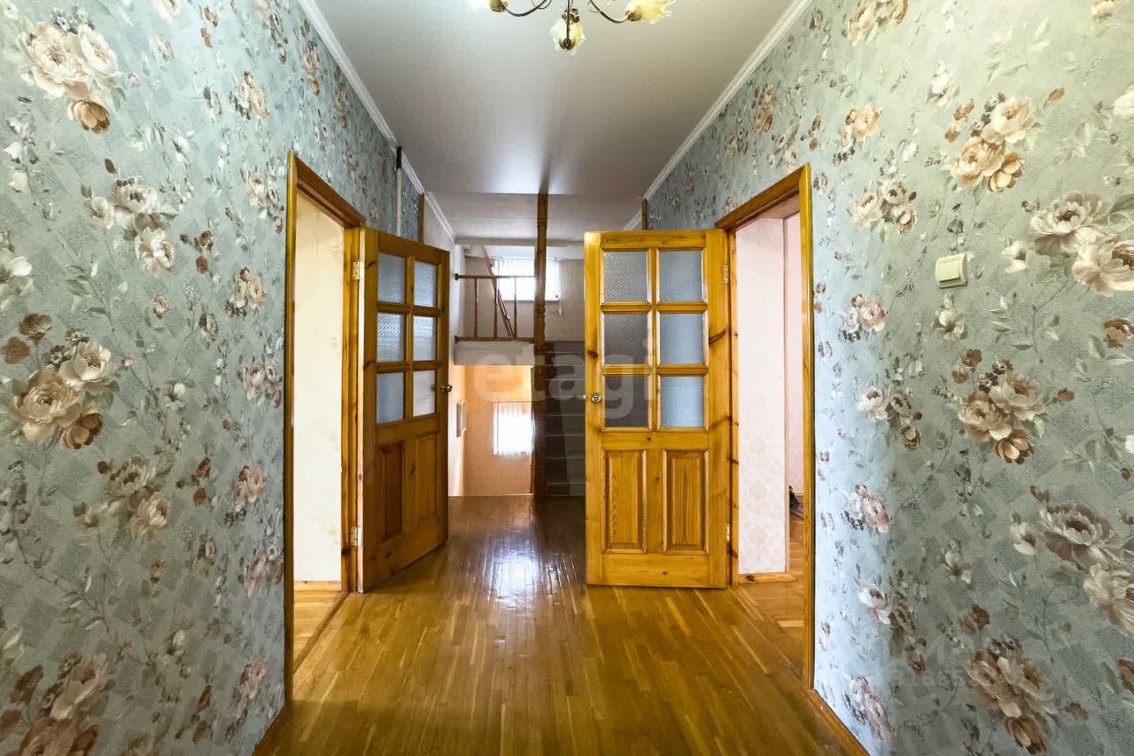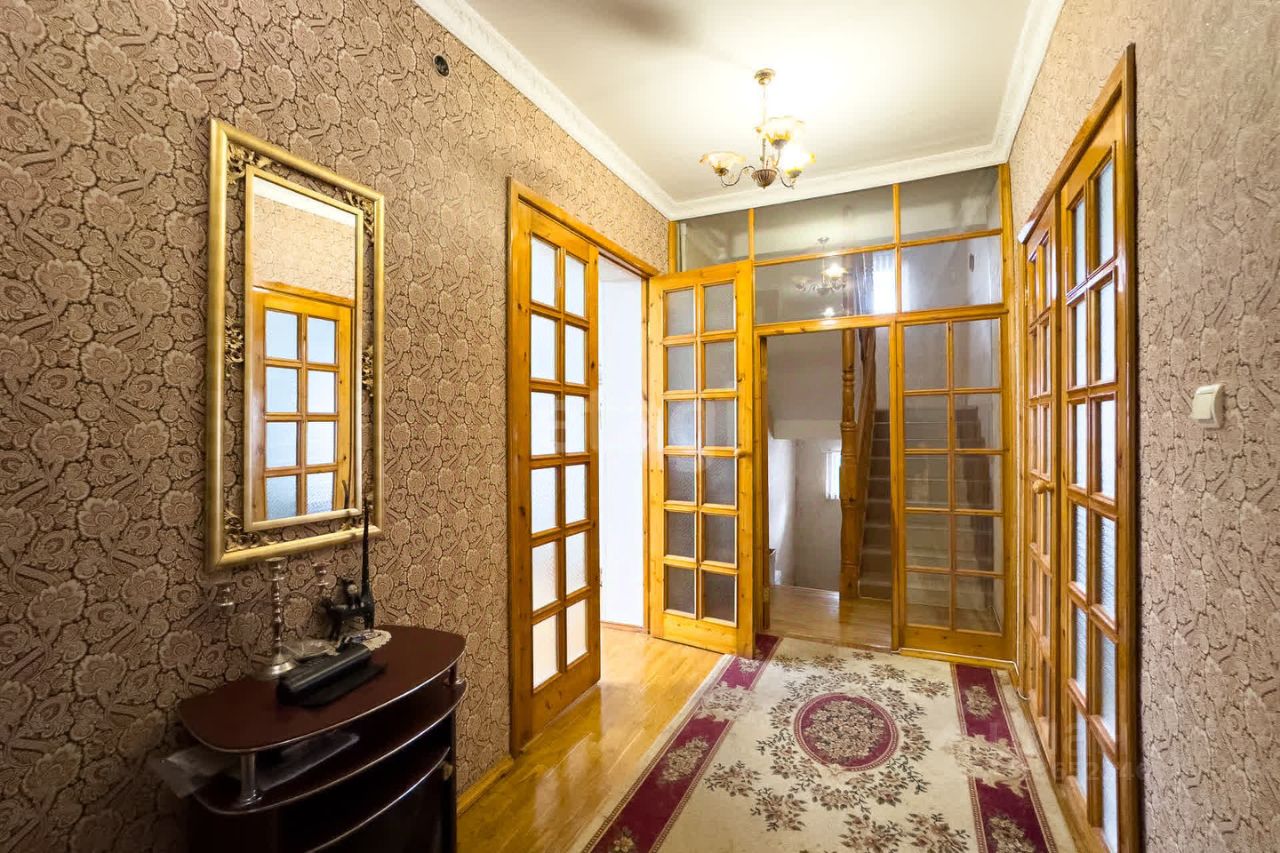 Дом с автономными коммуникациями включает скважину, газовое отопление с новым двухконтурным котлом и металлическую кровлю. На первом этаже расположены просторный зал, кухня со встроенной техникой и системой хранения, санузел. Полы из паркета, окна с пластиковыми стеклопакетами. Второй этаж отведен под четыре изолированные комнаты, санузел и лоджию. Цокольный этаж утеплен, здесь размещен газовый котел.