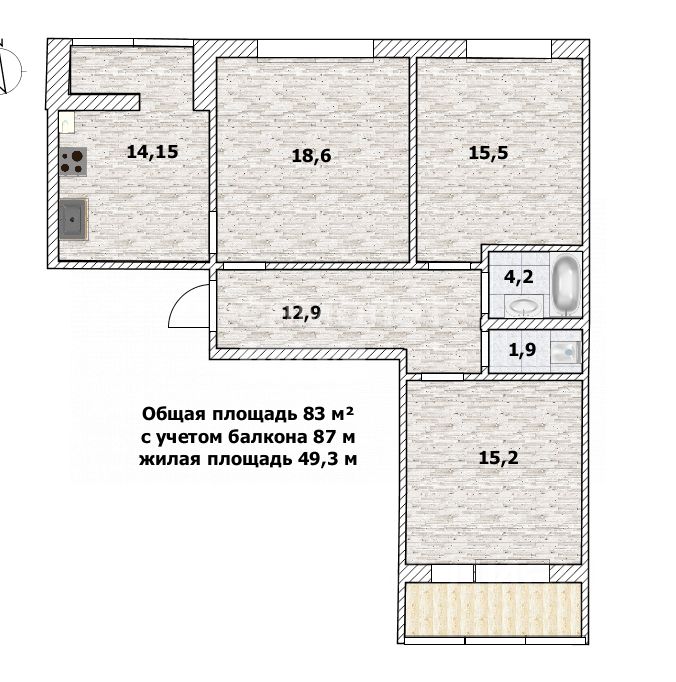 Арт. 108980509 Просторная трехкомнатная квартира площадью 83м с учетом балкона в элитном ЖК GreenПарк Возможен обмен.