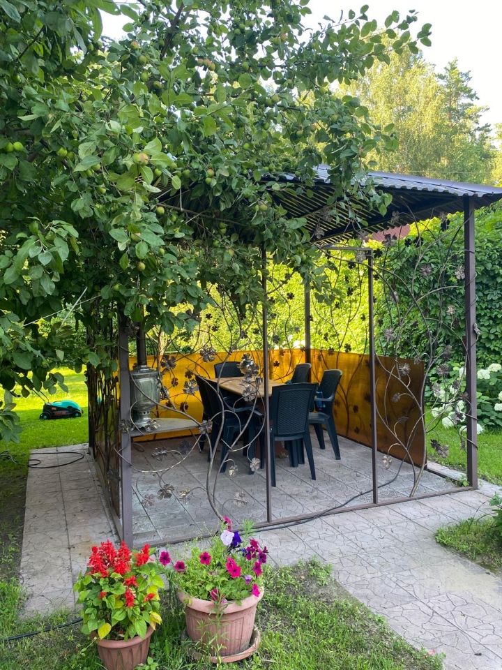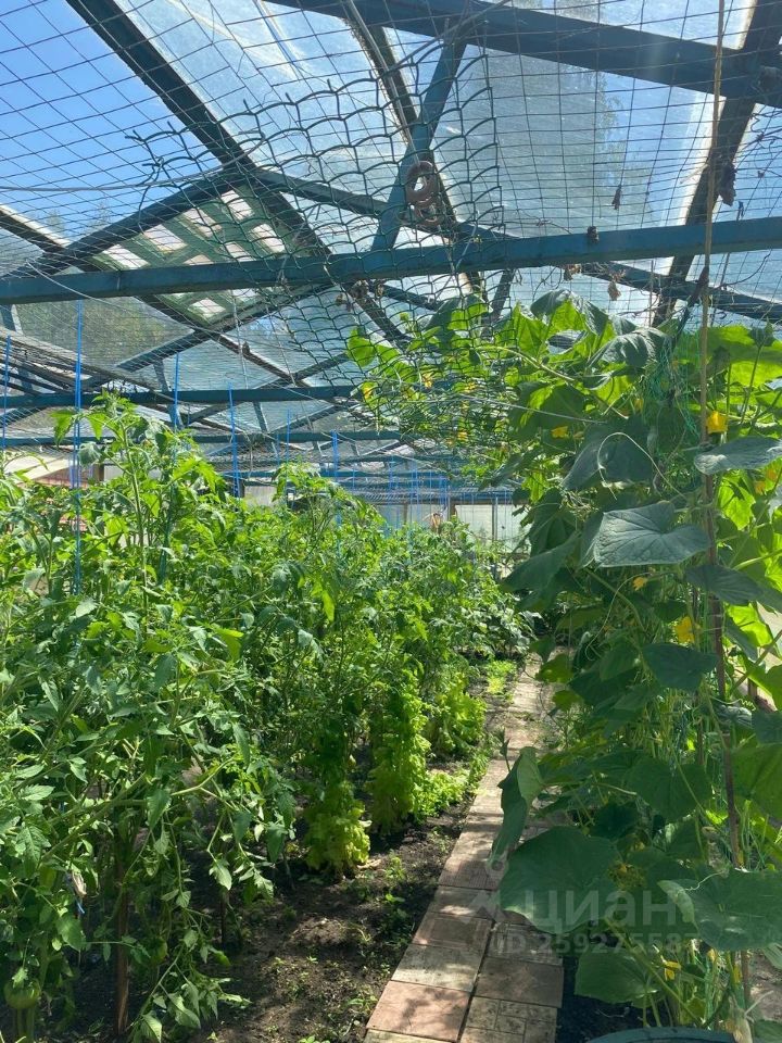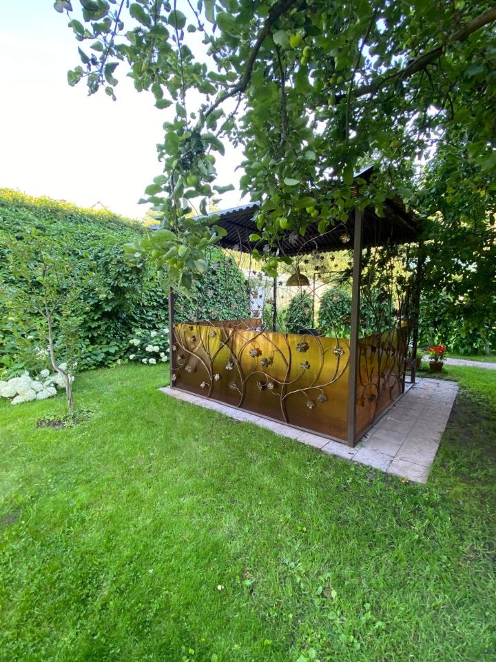 Общая инфраструктура на участке: - дом, - парник, 15м*5м на фундаменте из металлического профиля с покрытием из стеклоблоков, - хозяйственный блок, 6м*9м, внутри летняя кухня с привозным газовым обеспечением. 4м*6м. - баня, 4м*6м. - ажурная кованная летняя беседка Участок благоустроен, ухоженный газон.
