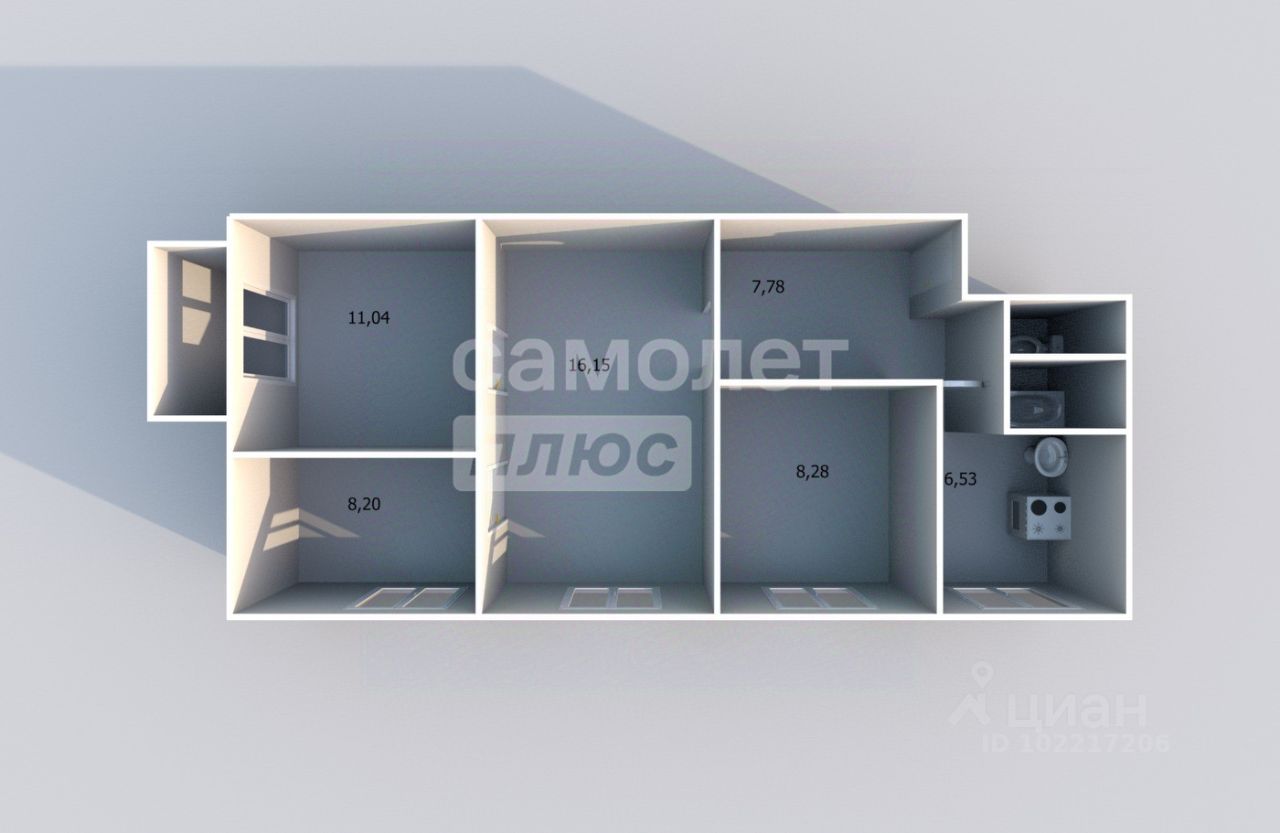 Квартира Общей площадью 61,2 кв.м Кухня площадью 6,5 кв.м Жилая площадь 43,7 кв.м