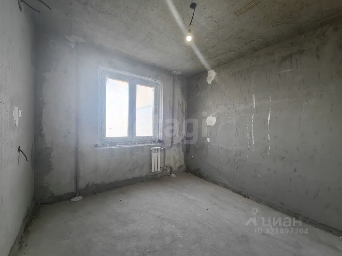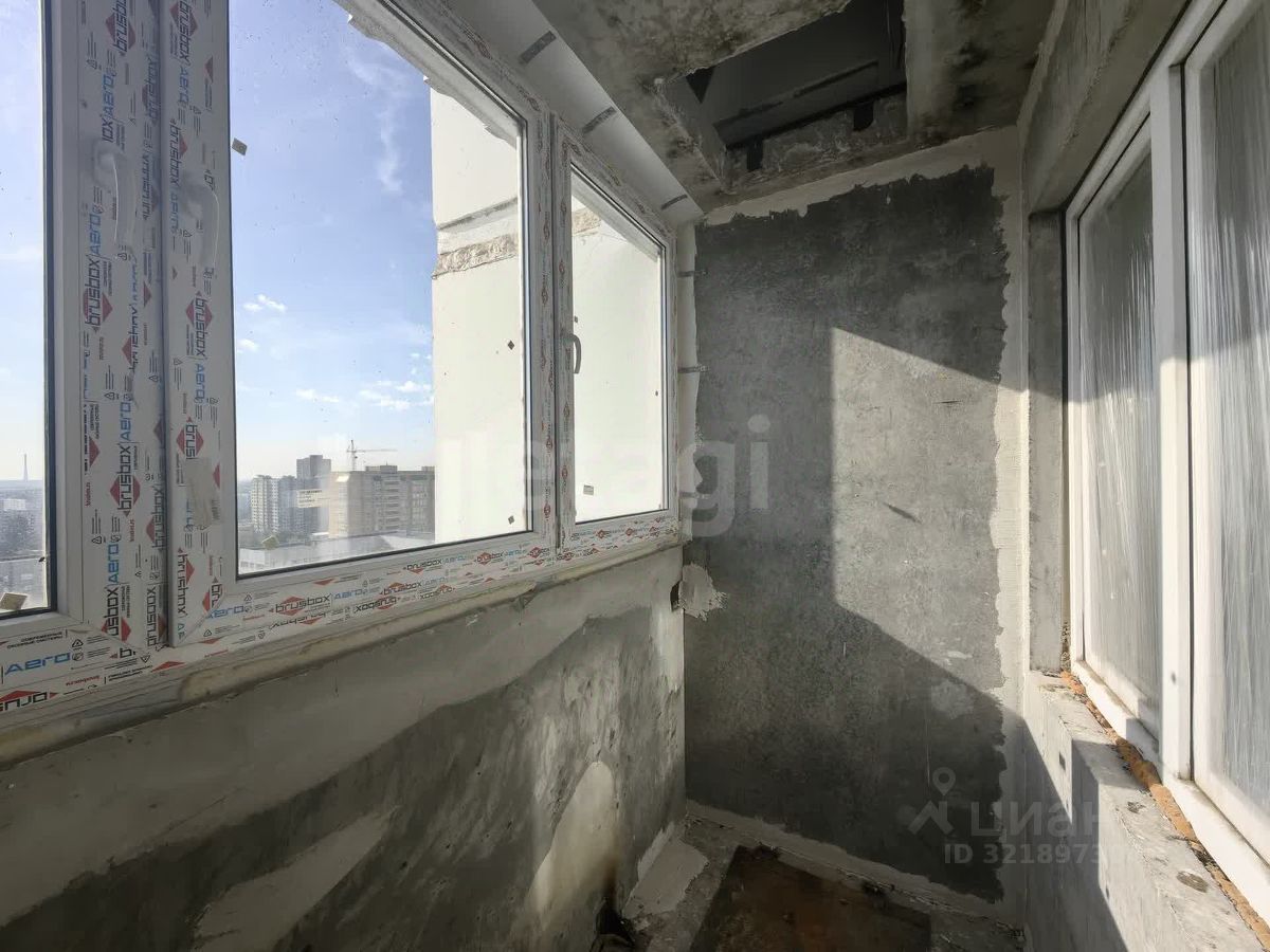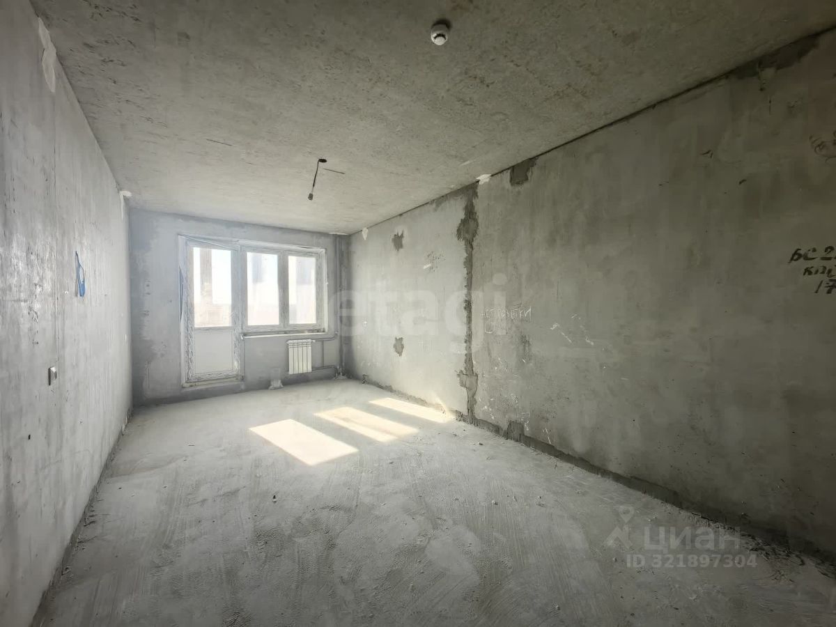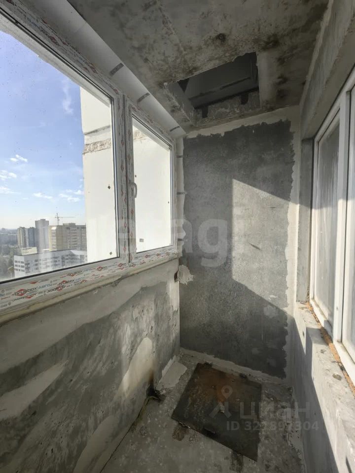 Квартира в черновой отделке. Установлены хорошие окна, на полу есть стяжка, балкон застеклен пластиковой рамой. Площадь кухни 10,34 кв м, комнаты - 18 кв м.