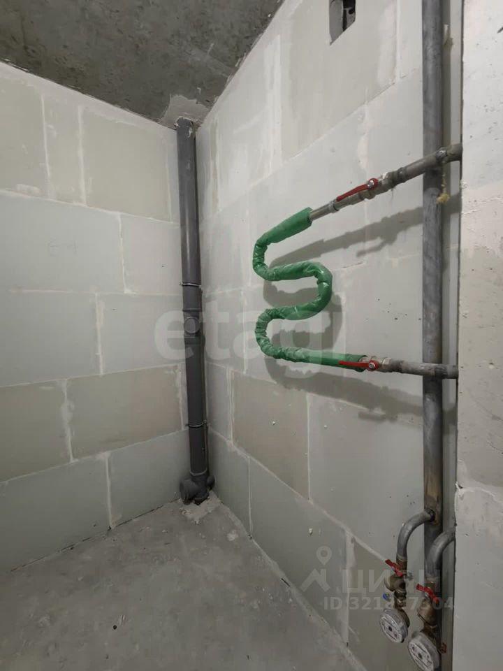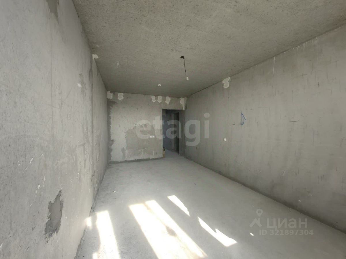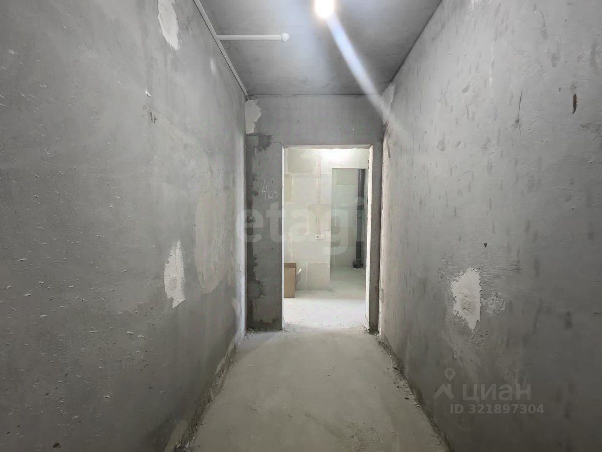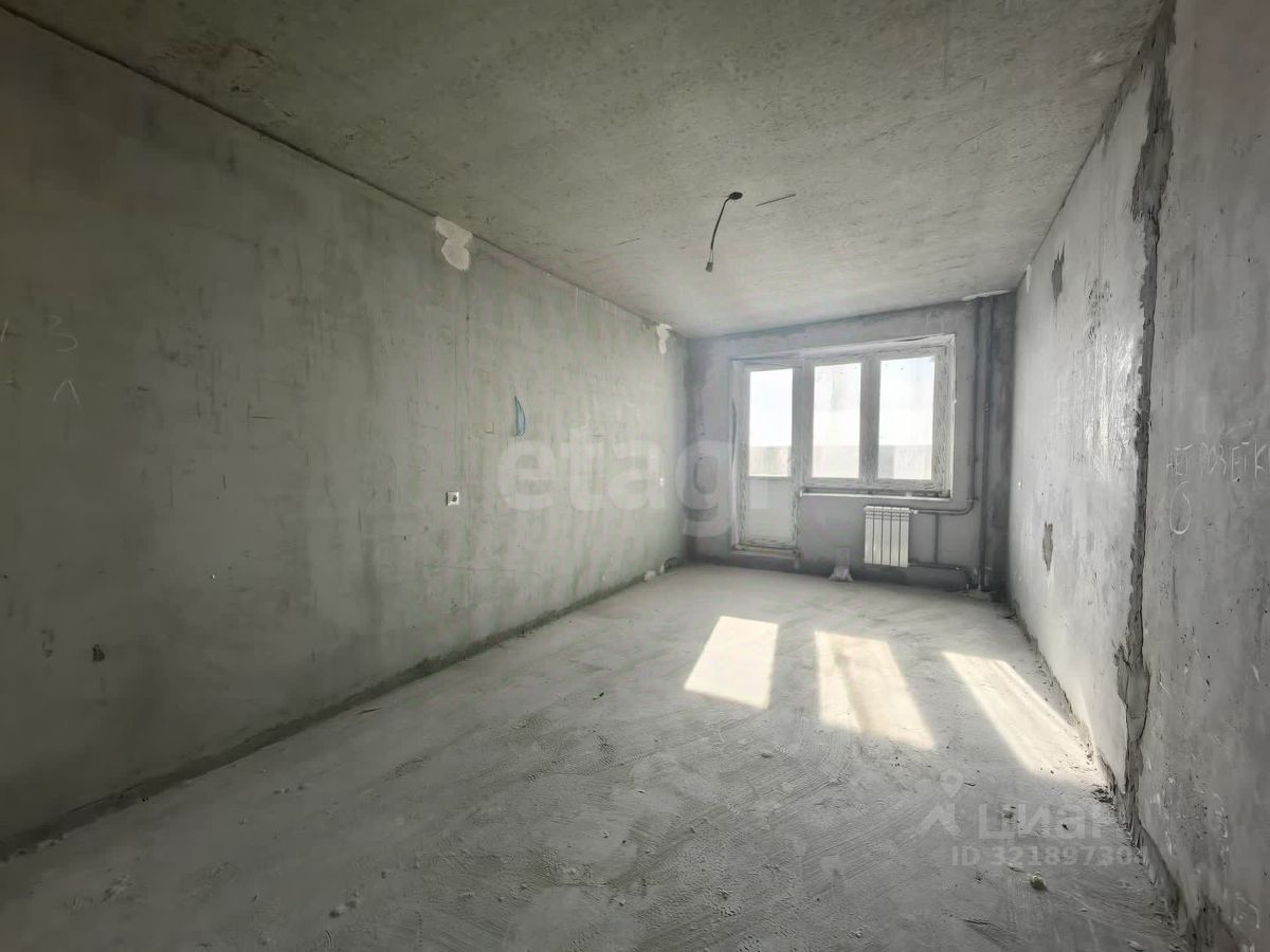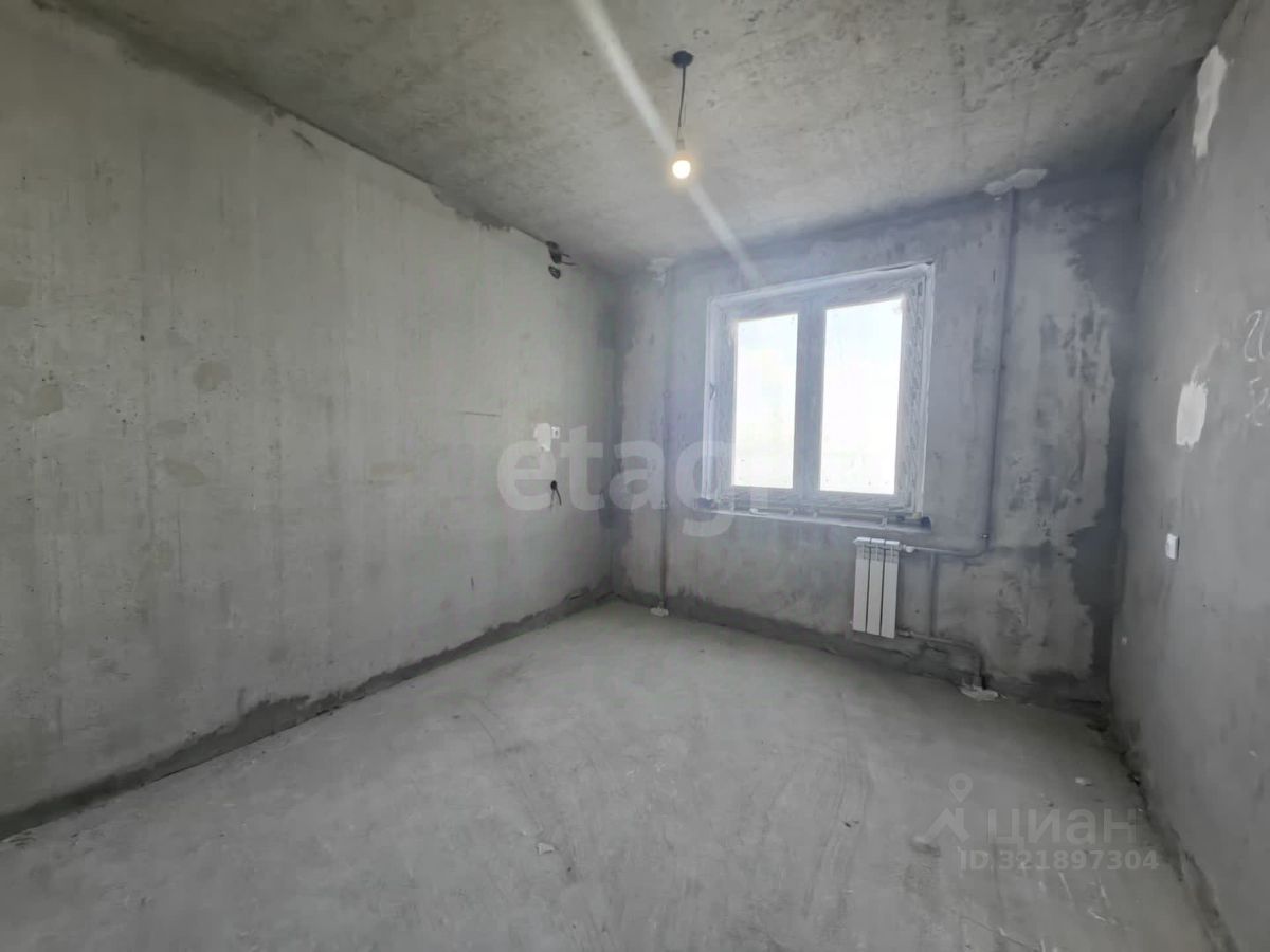 Квартира в черновой отделке. Установлены хорошие окна, на полу есть стяжка, балкон застеклен пластиковой рамой. Площадь кухни 10,34 кв м, комнаты - 18 кв м.