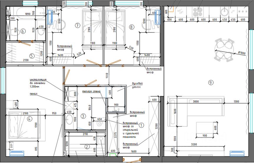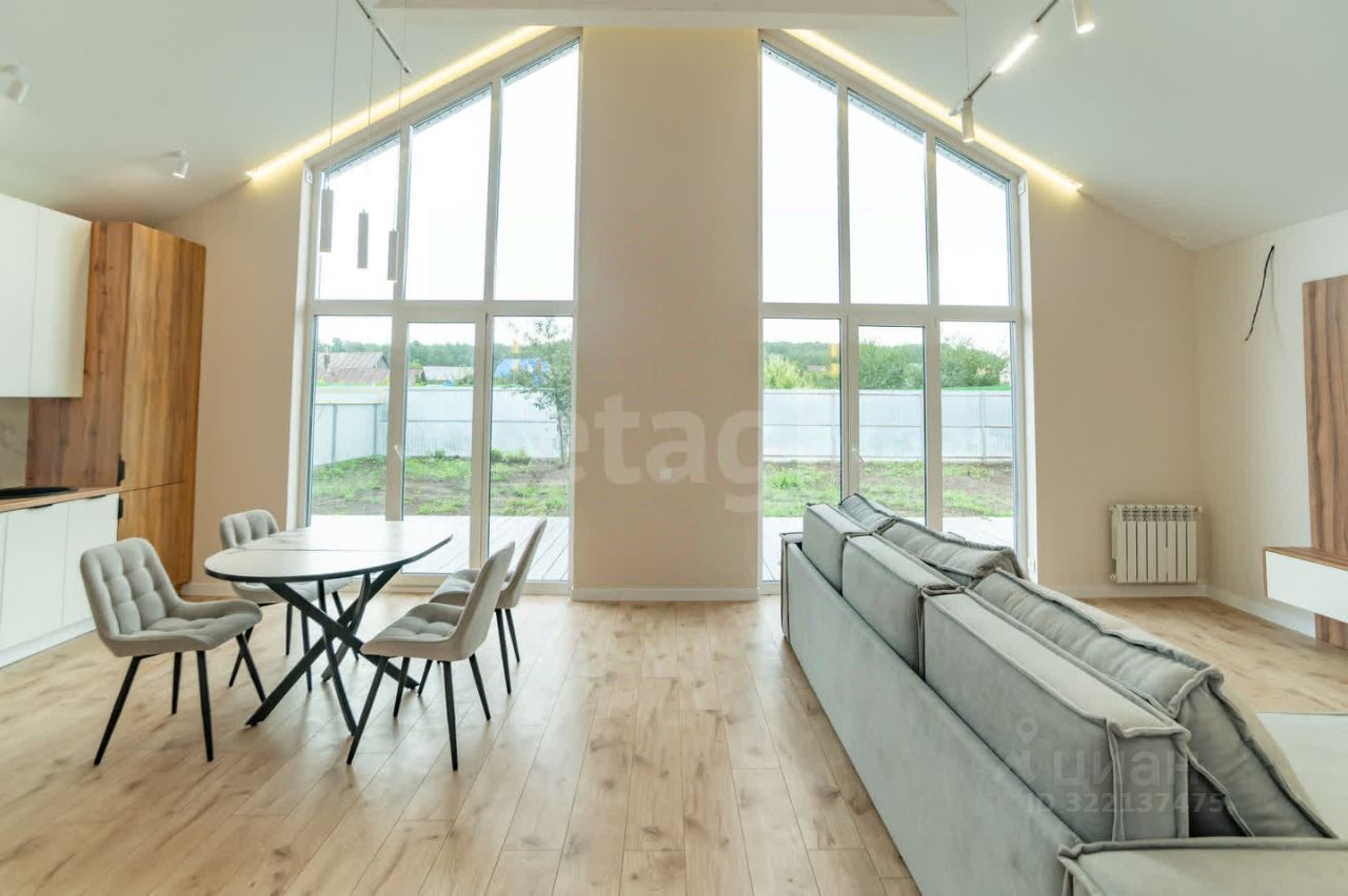 Дом выполнен в формате еврочетырехкомнатной планировки: просторная кухня-гостиная с панорамным остеклением и три изолированные комнаты, что создает удобство как для семьи, так и для работы или приема гостей. Встроенная мебель и бытовая техника остаются новому владельцу, что позволяет заселиться сразу после покупки.