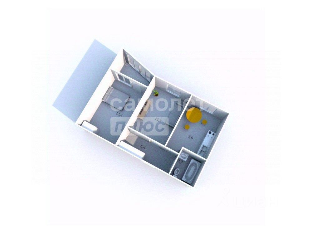 Квартира расположена на 8 этаже 9-этажного дома. Общая площадь квартиры с учетом лоджии 48,15 кв.м. Жилые комнаты при этом 13,4 и 11,5 кв.м.