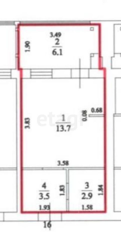 Квартира-студия 26,2 м² на 2 этаже с косметическим ремонтом