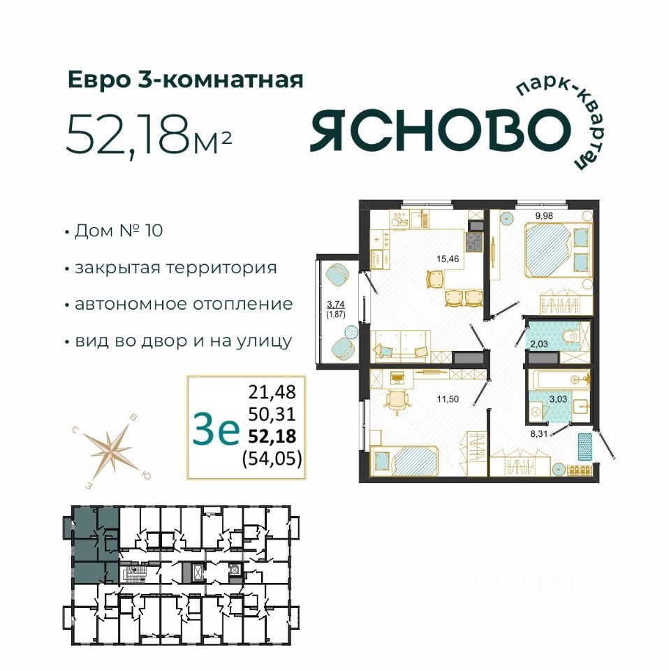 Общая площадь52,18 м2