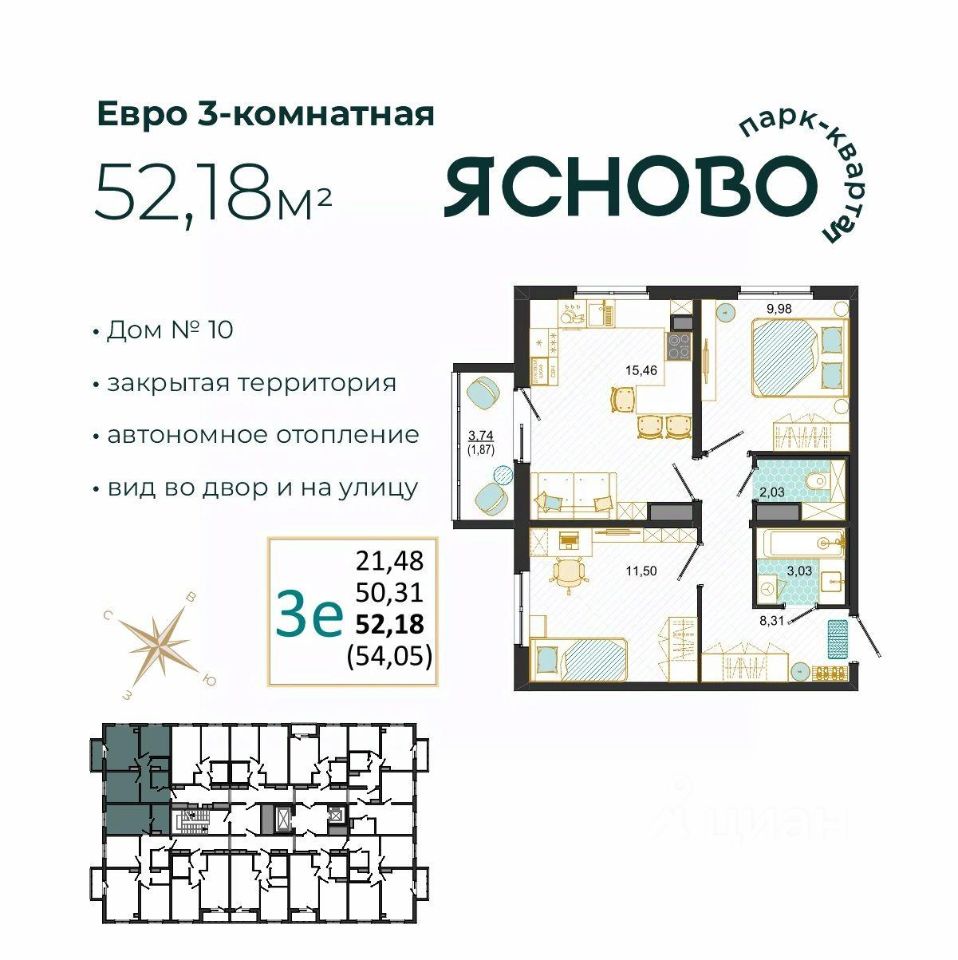 Общая площадь52,18 м2