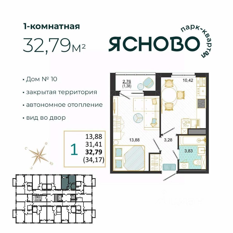 Общая площадь32,79 м2
