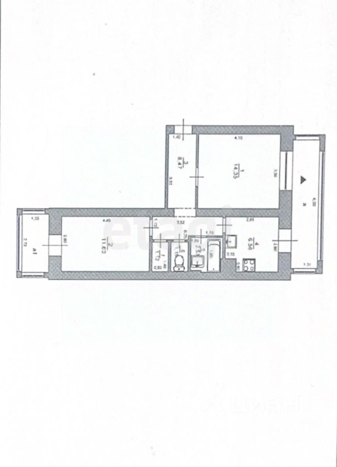 Просторная двухкомнатная квартира с рациональной планировкой предлагает комфортное и функциональное пространство для жизни.