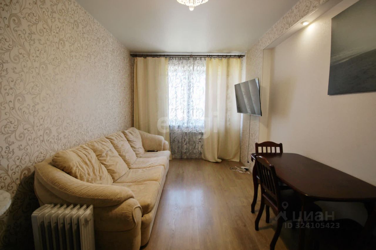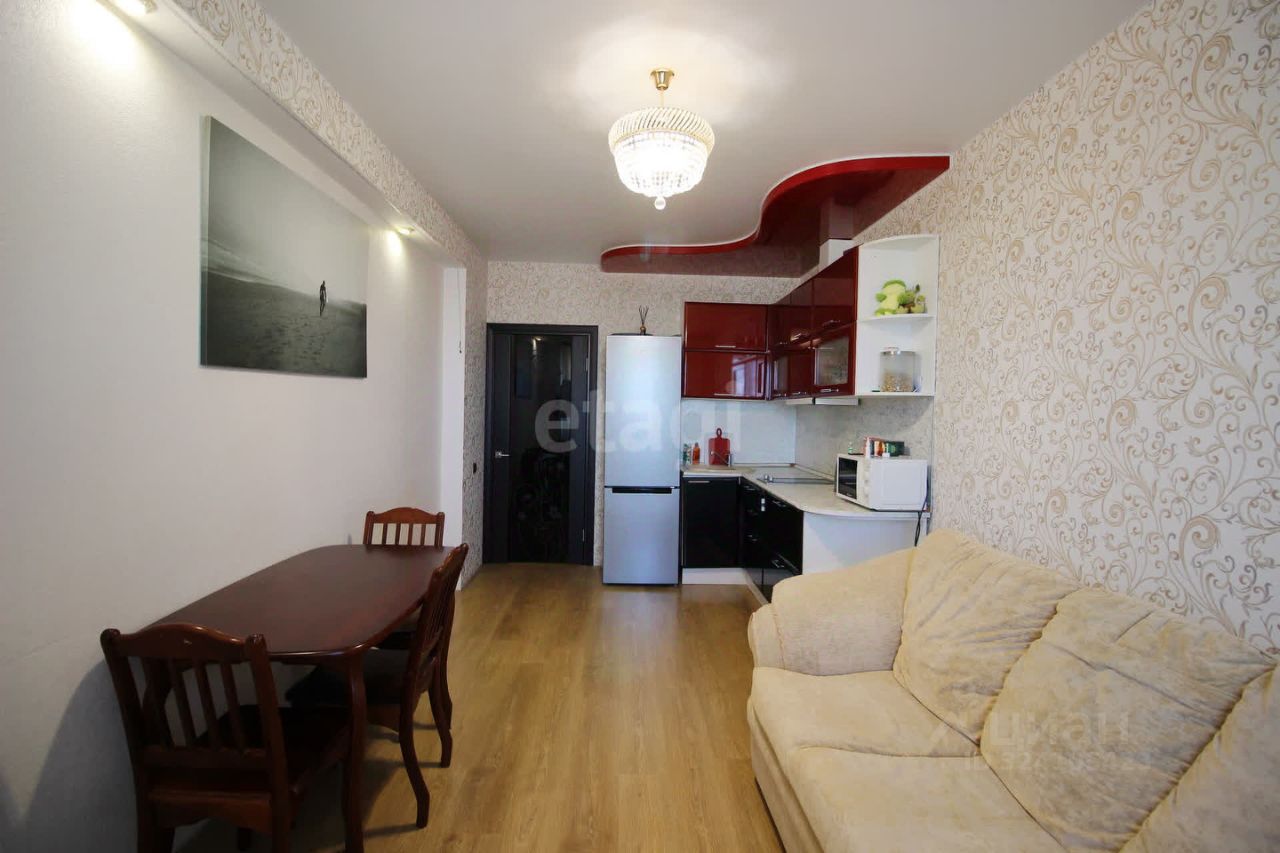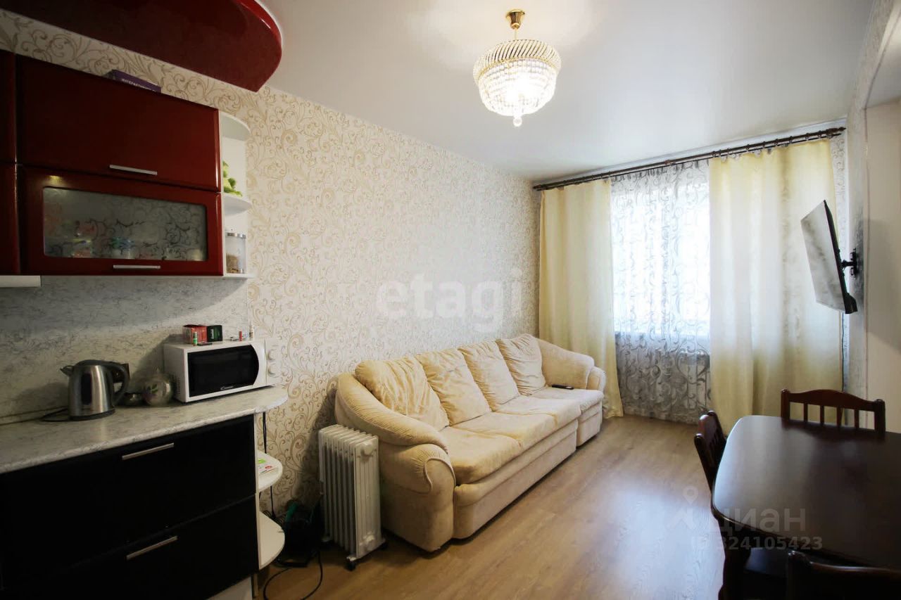 В квартире остаются все необходимые элементы для комфортного проживания: мягкая мебель, стильный кухонный гарнитур и большой вместительный шкаф-купе в коридоре и в комнате.