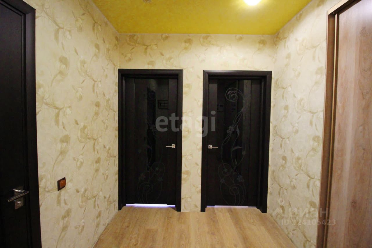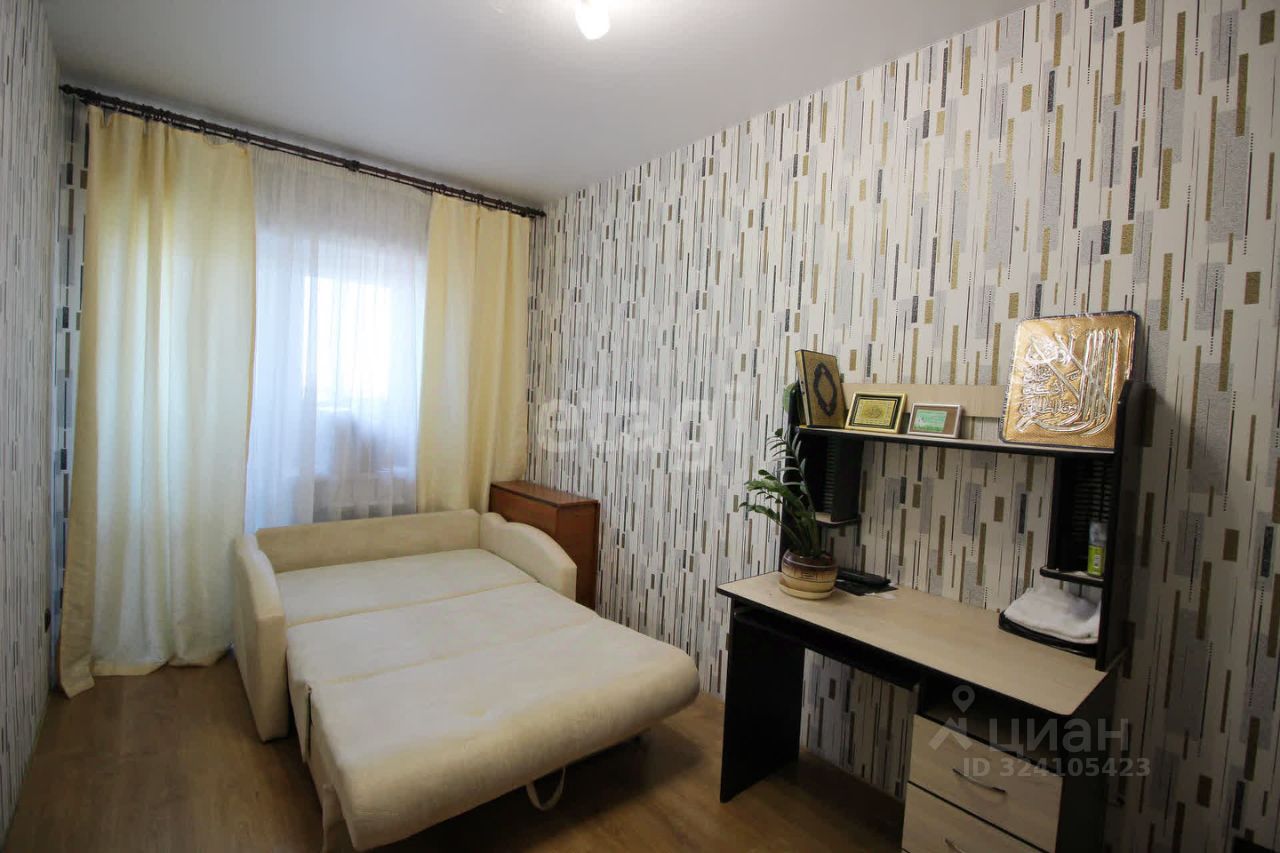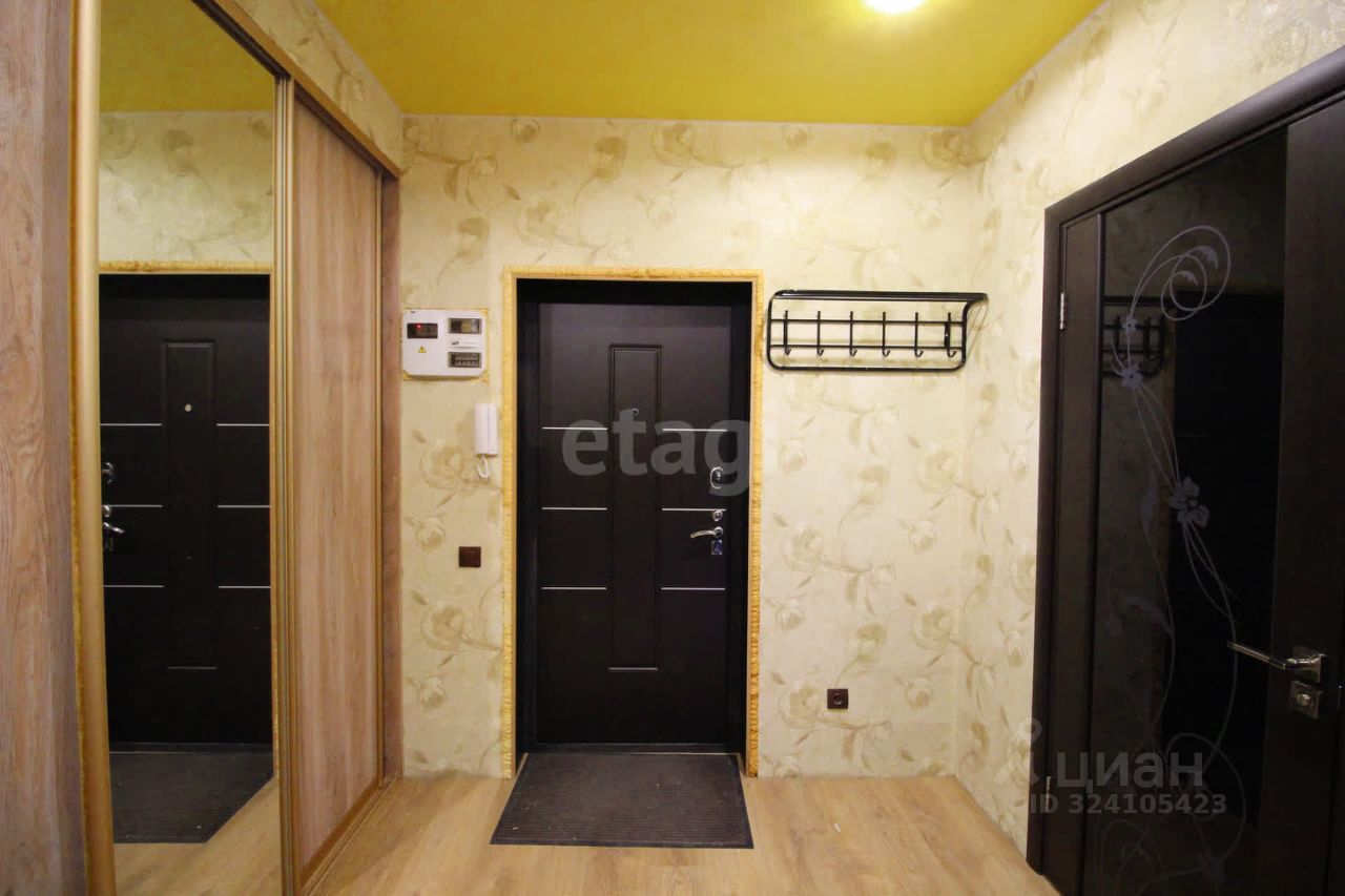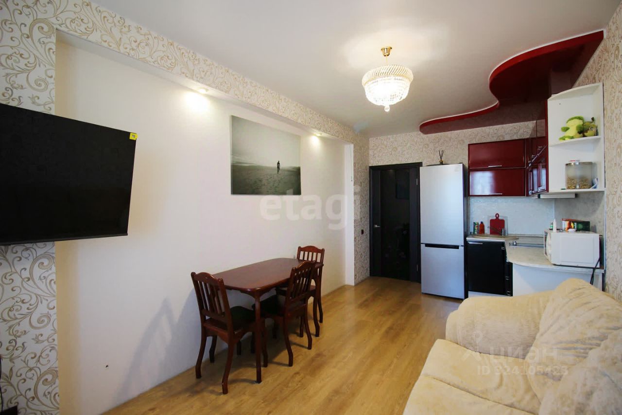 В квартире остаются все необходимые элементы для комфортного проживания: мягкая мебель, стильный кухонный гарнитур и большой вместительный шкаф-купе в коридоре и в комнате.
