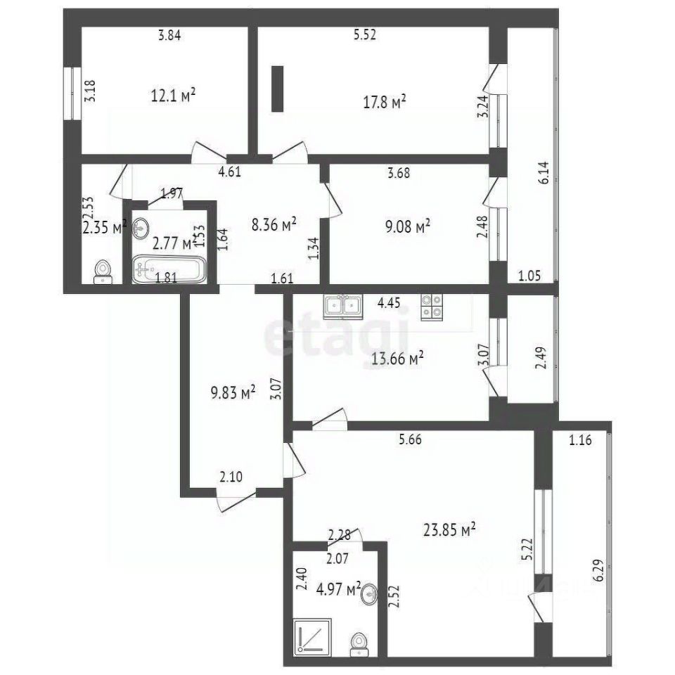 В квартире косметический ремонт. Все комнаты квадратной, правильной формы, можно удобно расставить мебель и останется много полезного пространства. Большая кухня соберёт всю семью!