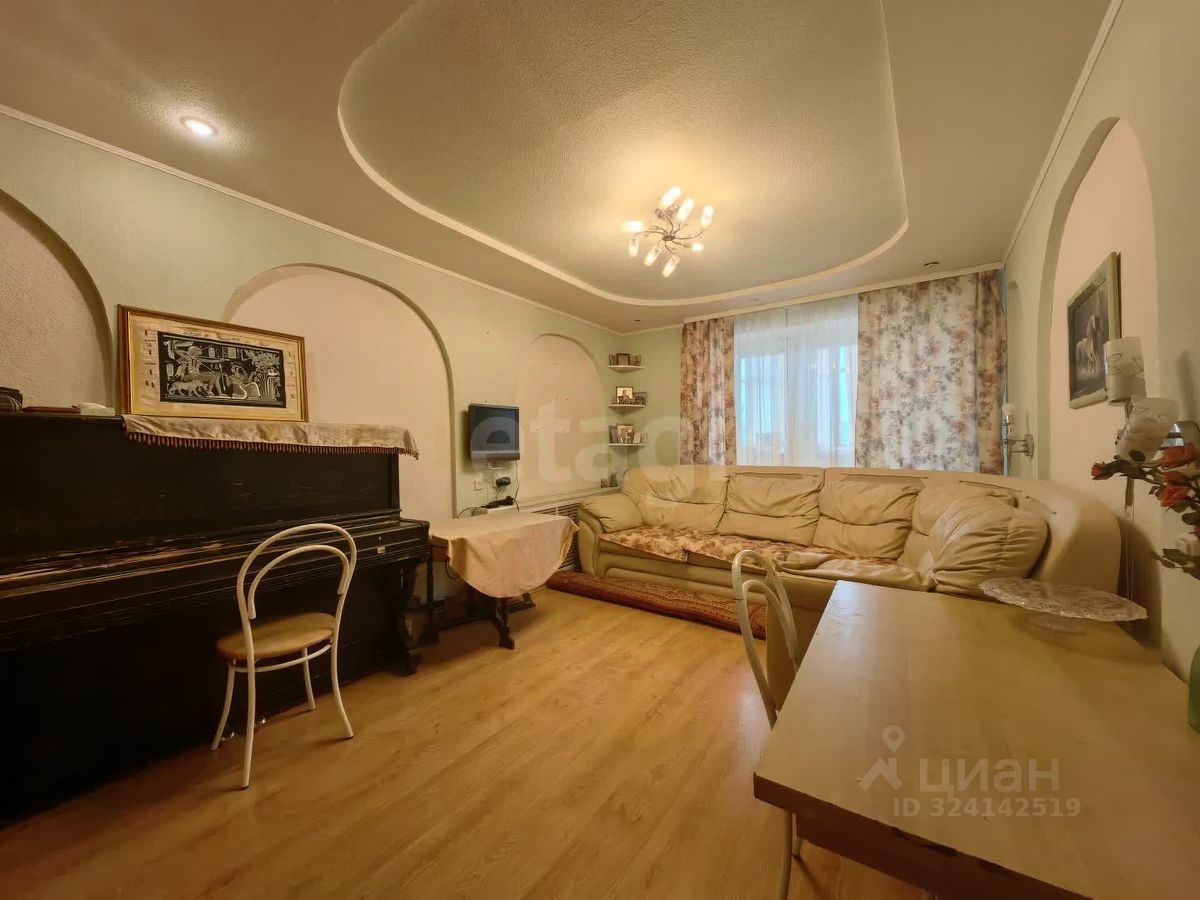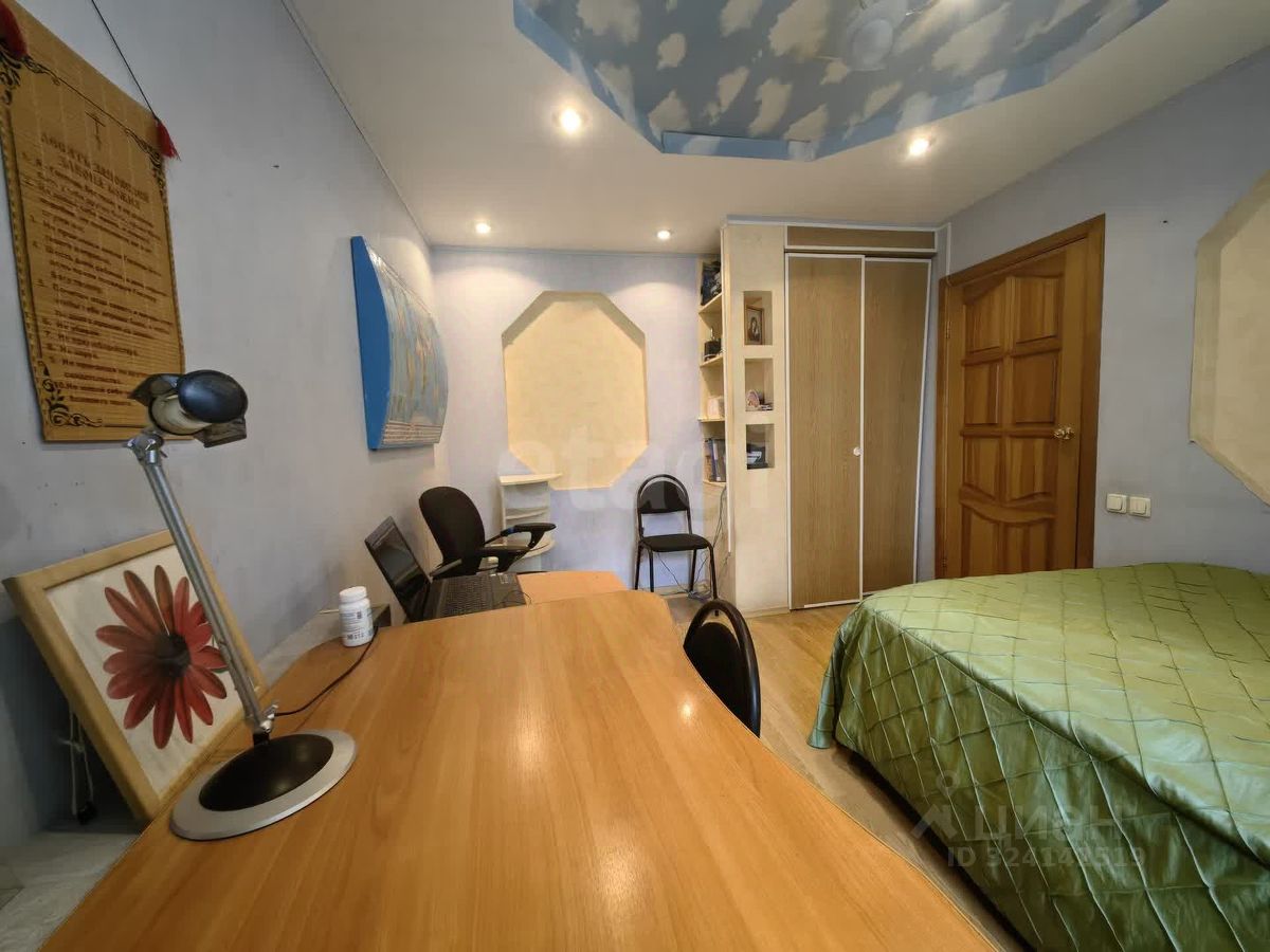Квартира представляет собой объединённые две квартиры, по документам официально оформлены в одну. Два санузла. Две большие лоджии и одна полу-лоджия, застеклены деревянной рамой, устроены места хранения.