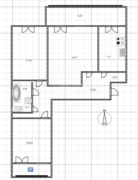 Трехкомнатная квартира 65 квм на седьмом этаже в Новом городе!