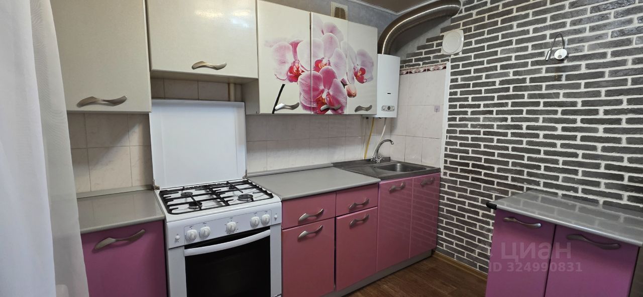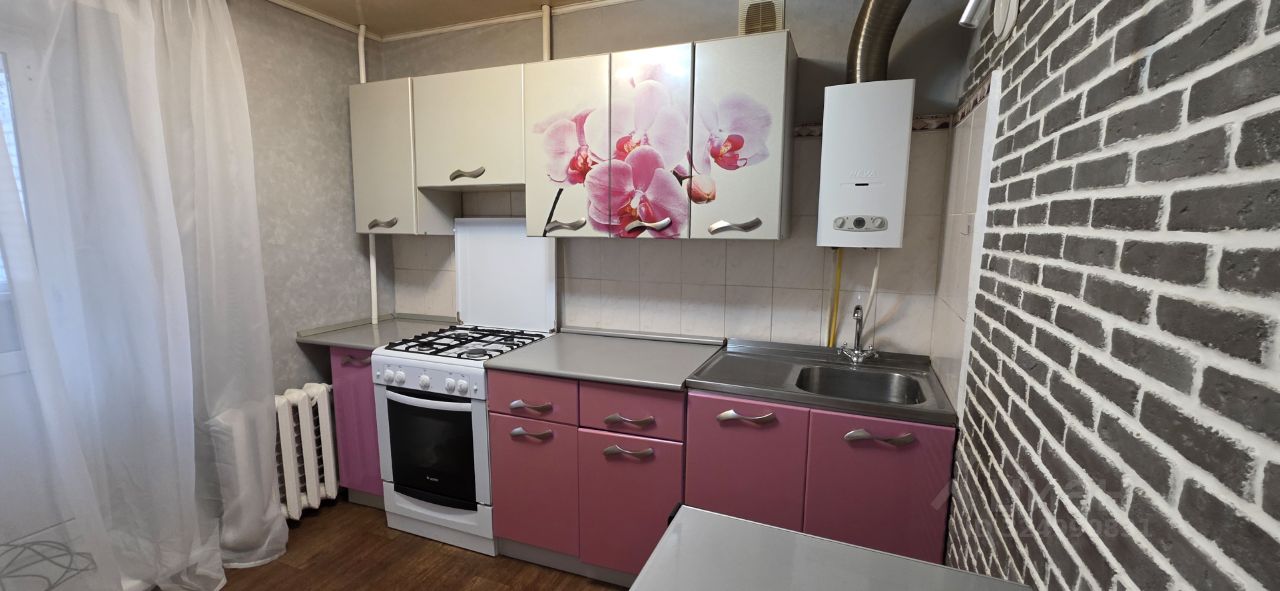 Светлая кухня 7,6 м2 с кухонным гарнитуром, новой газовой плитой и новой газовой колонкой. Кухня с выходом на лоджию.