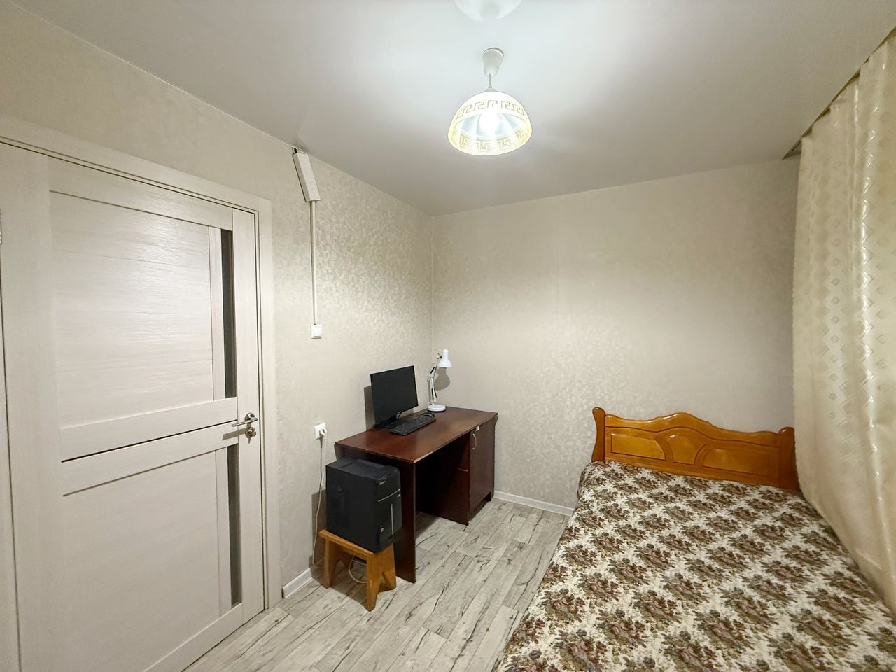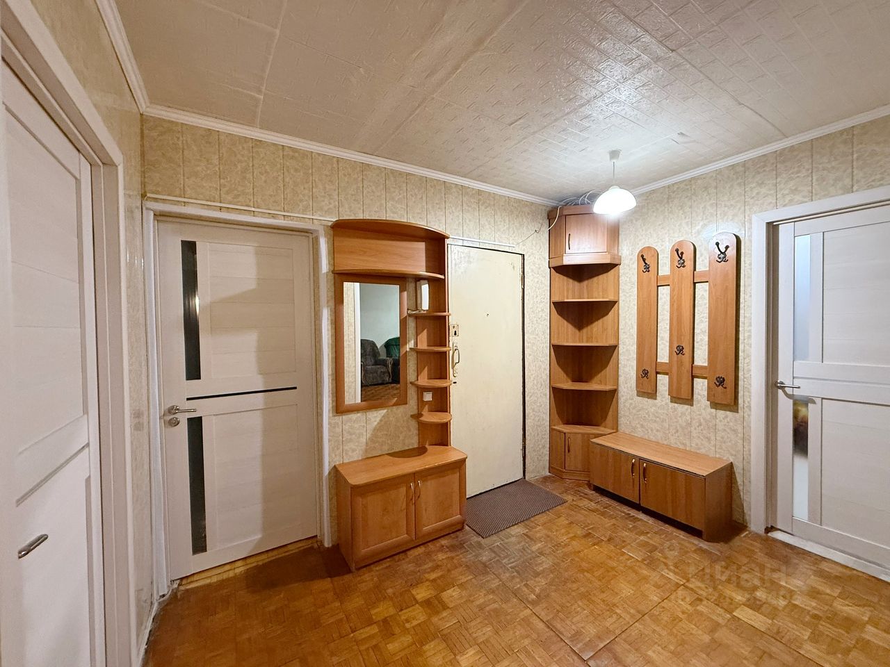 кухонный гарнитур, натяжные потолки в 3 спальнях и на кухне, шкаф-купе в спальне, прихожая с зеркалом, светлые современные межкомнатные двери, пластиковые окна, раздельный санузел, заменены трубы и стояки, установлены счётчики.