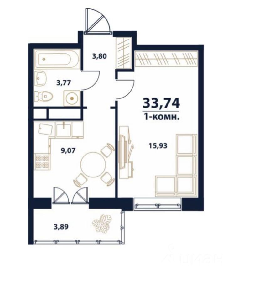 Общая площадь33,74 м2
