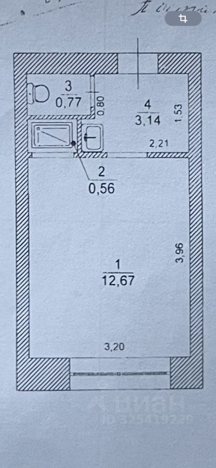 Квартира расположена на втором этаже пятиэтажного кирпичного дома. Общая площадь квартиры — 17,1 кв. м, что идеально подходит для одного человека или небольшой семьи.