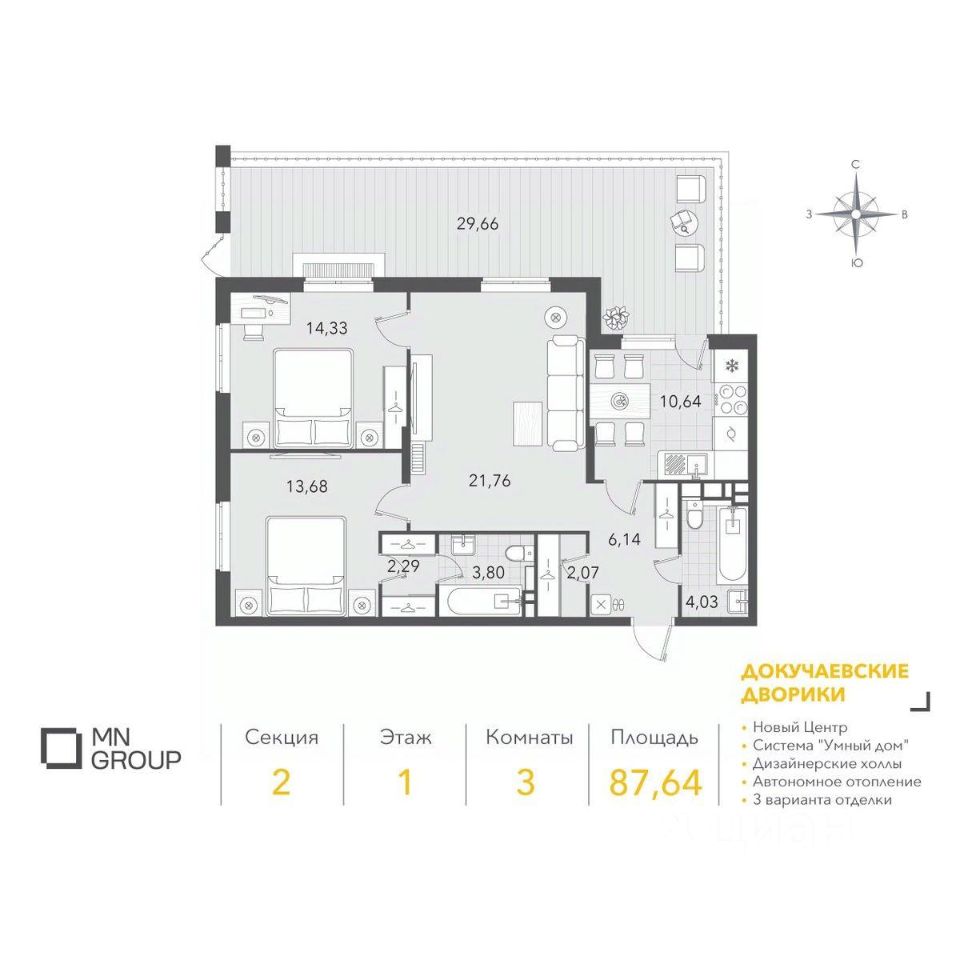 Общая площадь87,64 м2