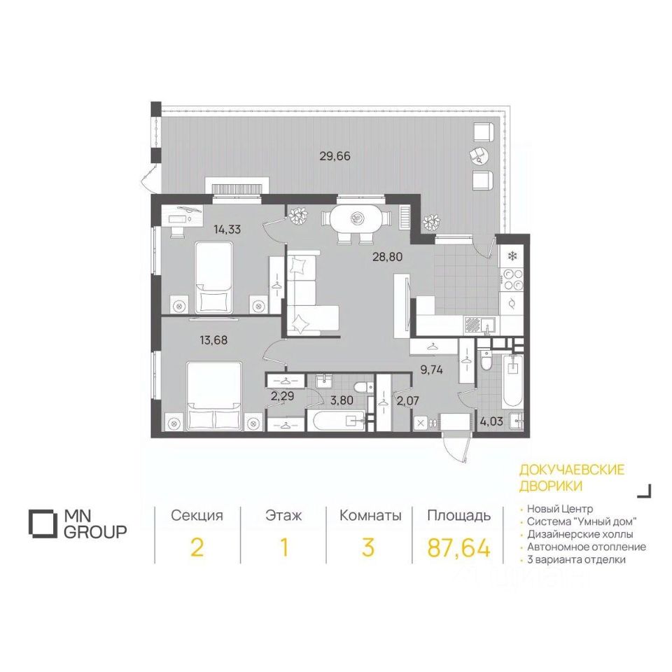 Купить данную квартиру в квартале ''Докучаевские дворики'' можно напрямую от застройщика ''MN Group'': - сопровождение по оформлению квартиры с персональным менеджером - семейная ипотека - военная ипотека - возможность покупки квартиры с предчистовой и чистовой отделкой - обмен старой квартиры в счет покупки новой Запишитесь на консультацию по телефону или на сайте.