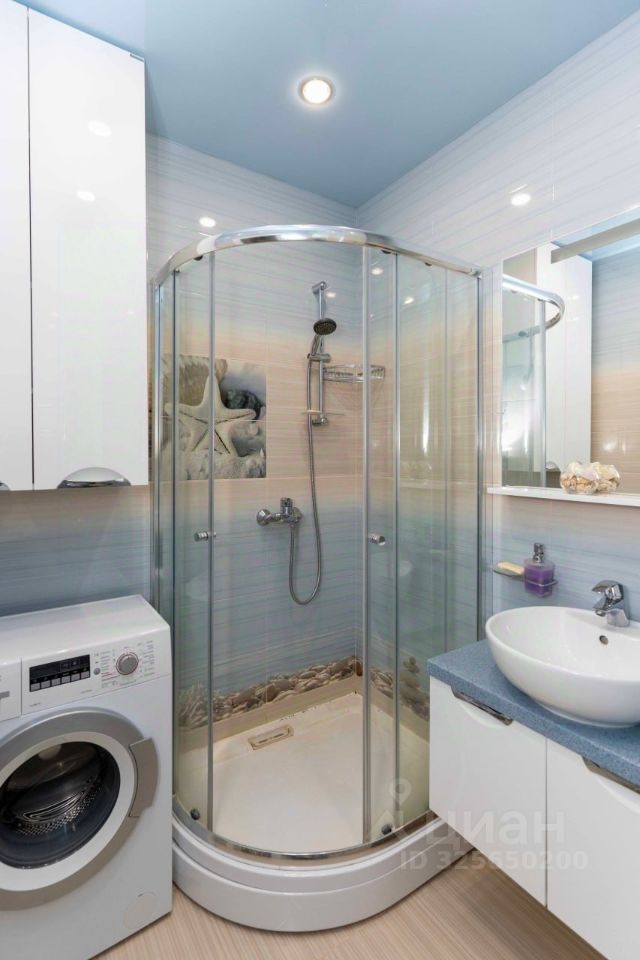 * Санузел отделан плиткой, оснащен немецкой сантехникой, все смесители Фирмы Grohe, столешница в ванной комнате выполнена из камня. Мебель в санузле - МДФ , эмаль белая . Стиральная машина Bosh