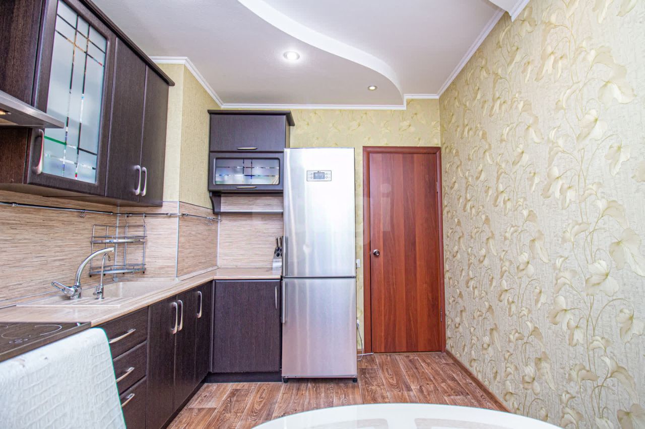 В квартире выполнен современный ремонт в единой стилистике. Заезжайте и наслаждайтесь жизнью! - Во всей квартире установлены пластиковые окна, элегантные межкомнатные двери - Для тех, кто ценит личное время и продуктивность, предусмотрен обустроенный кабинет. - Раздельный санузел, отделанный кафелем, с установленными счетчиками на горячую и холодную воду, гарантирует ваше удобство. - Просторная кухня для кулинарных шедевров, утепленная лоджия для отдыха в любое время года. Приятные бонусы: Новым владельцам остаются стильный кухонный гарнитур и часть мебели (включая вместительные шкафы-купе в комнате и прихожей).