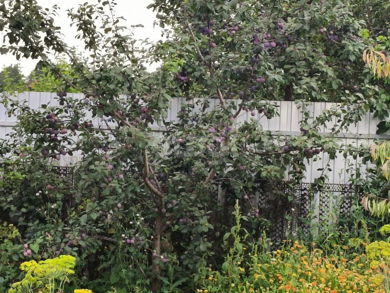 На участке имеются плодовые деревья и кустарники : яблoня, слива, вишня, крыжoвник, смородина, клубника. В начале весны был посажен свежий газон.