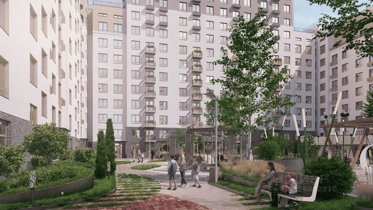 На внутренней территории жилого комплекса предусмотрен закрытый двор c зонами для работы и отдыха, спортивными и детскими площадкми. Продуманный ландшафтный дизайн с разнообразными растениями создаст дополнительный уют на территории двора. Благодаря сквозным подъездам легко попасть на улицу и двор.