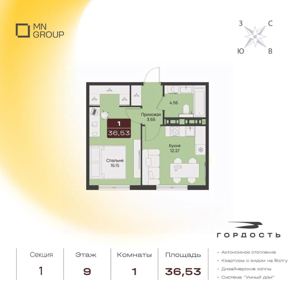 Общая площадь36,53 м2