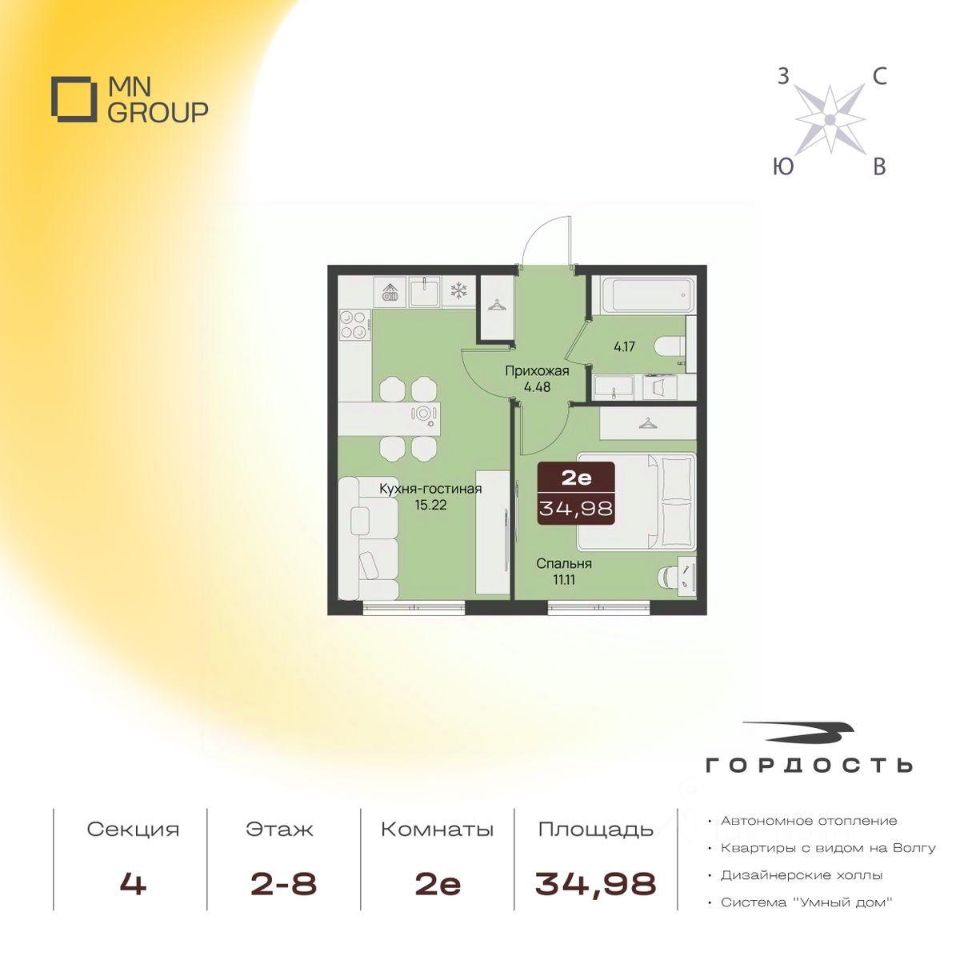 Общая площадь34,98 м2